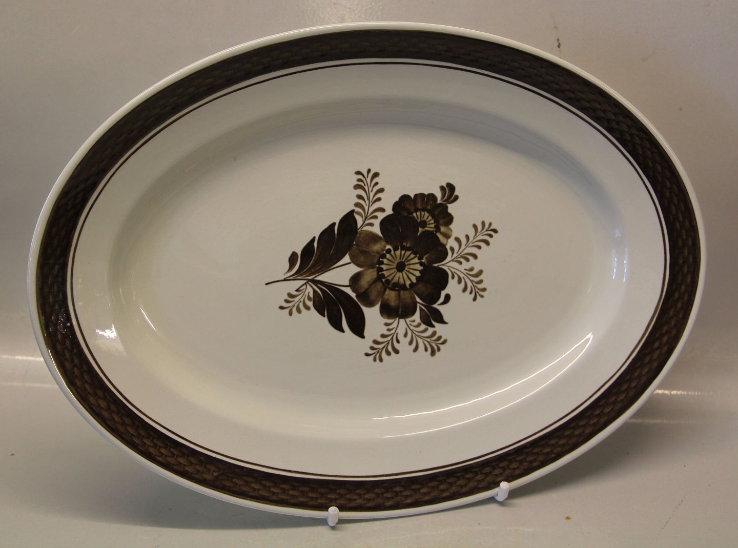 0929-45 Fad, ovalt 27 x 38 cm Royal Copenhagen Aluminia Brun Tranquebar I fin og hel stand