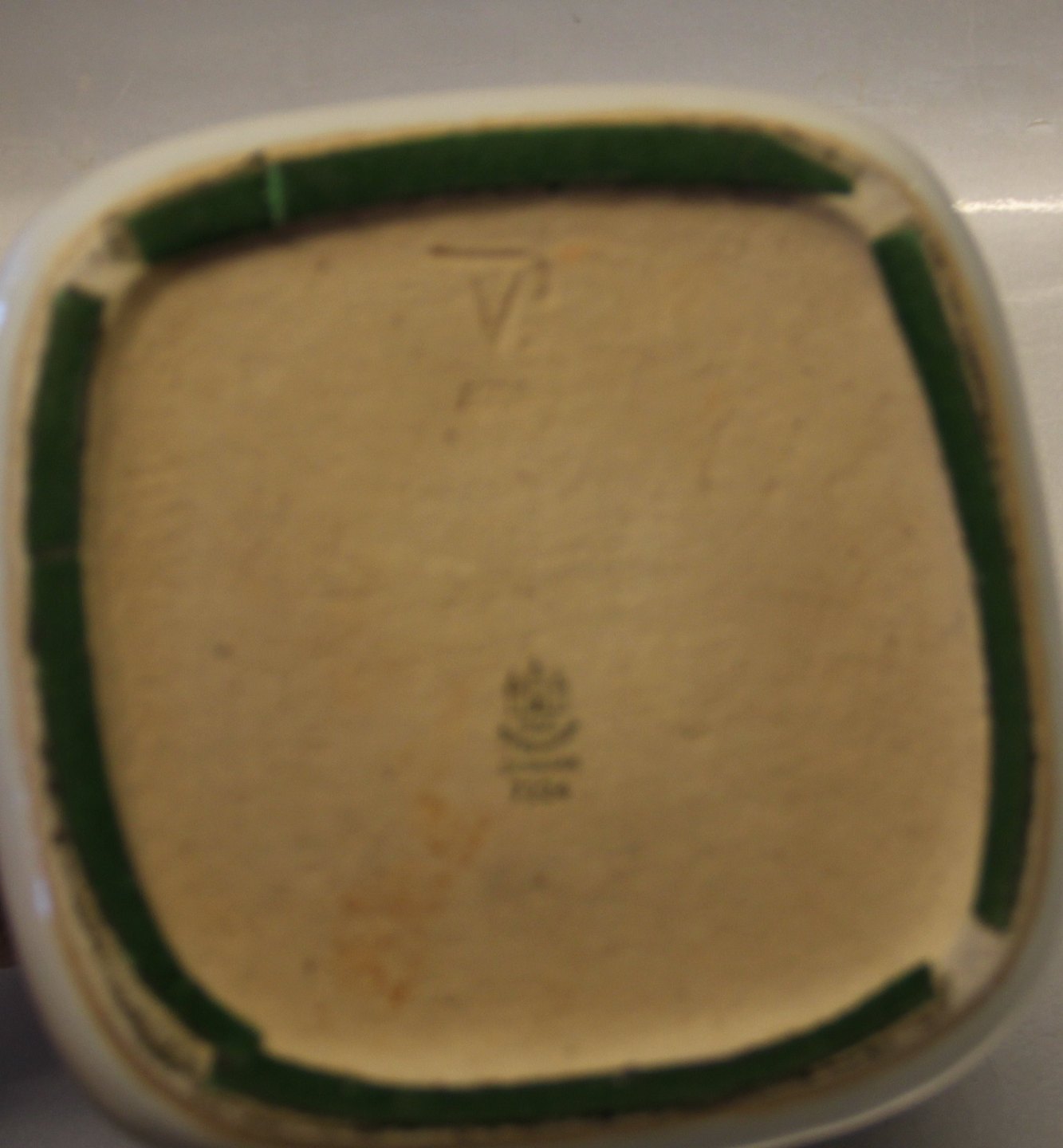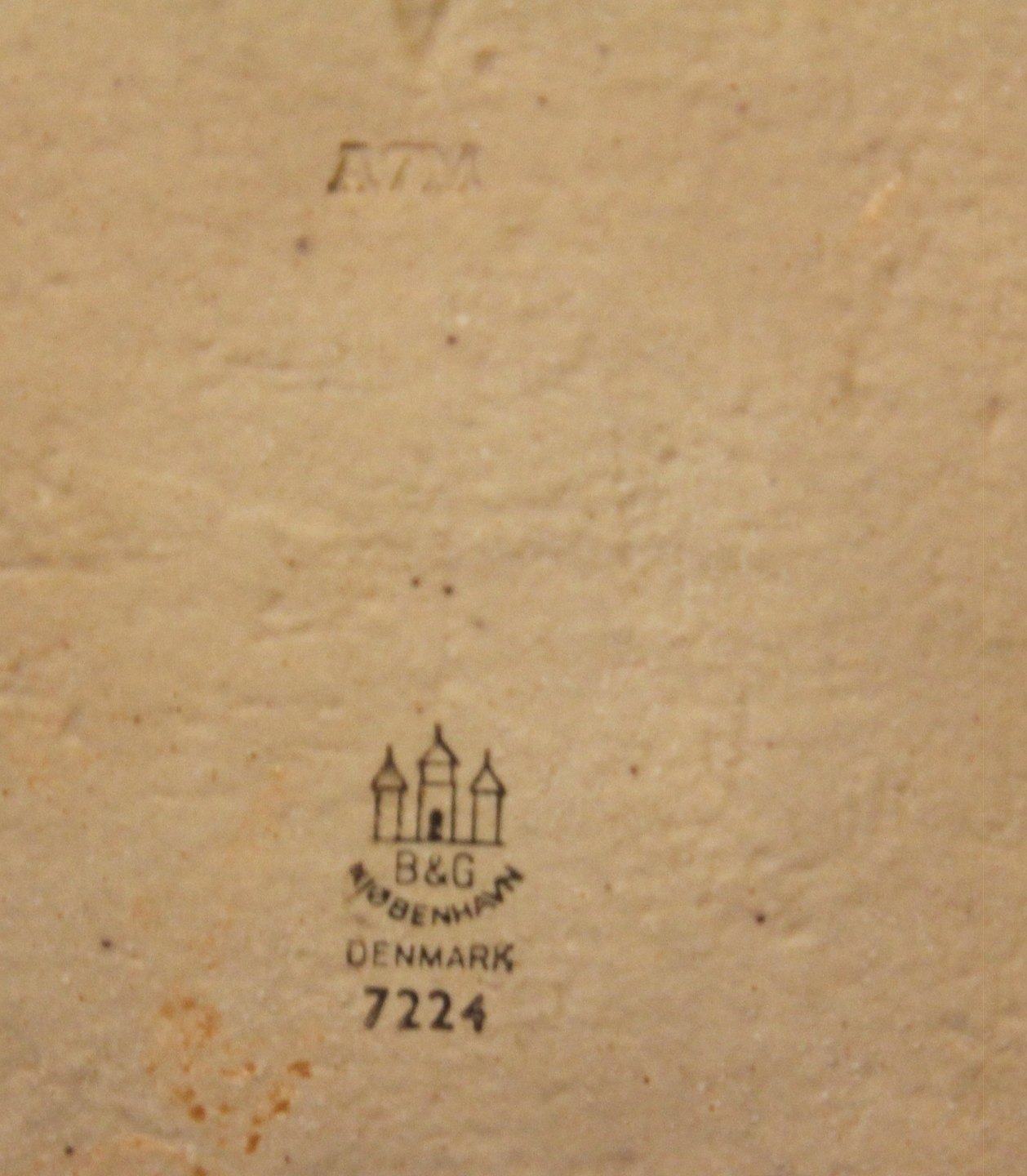 Beskrivelse: Bing & Grøndahl stentøj B&G 7224 Vase med blå moderne dekoration 17 x 15.5 cm Valdemar Pedersen VP A7M I fin og hel stand Bing & Groendahl