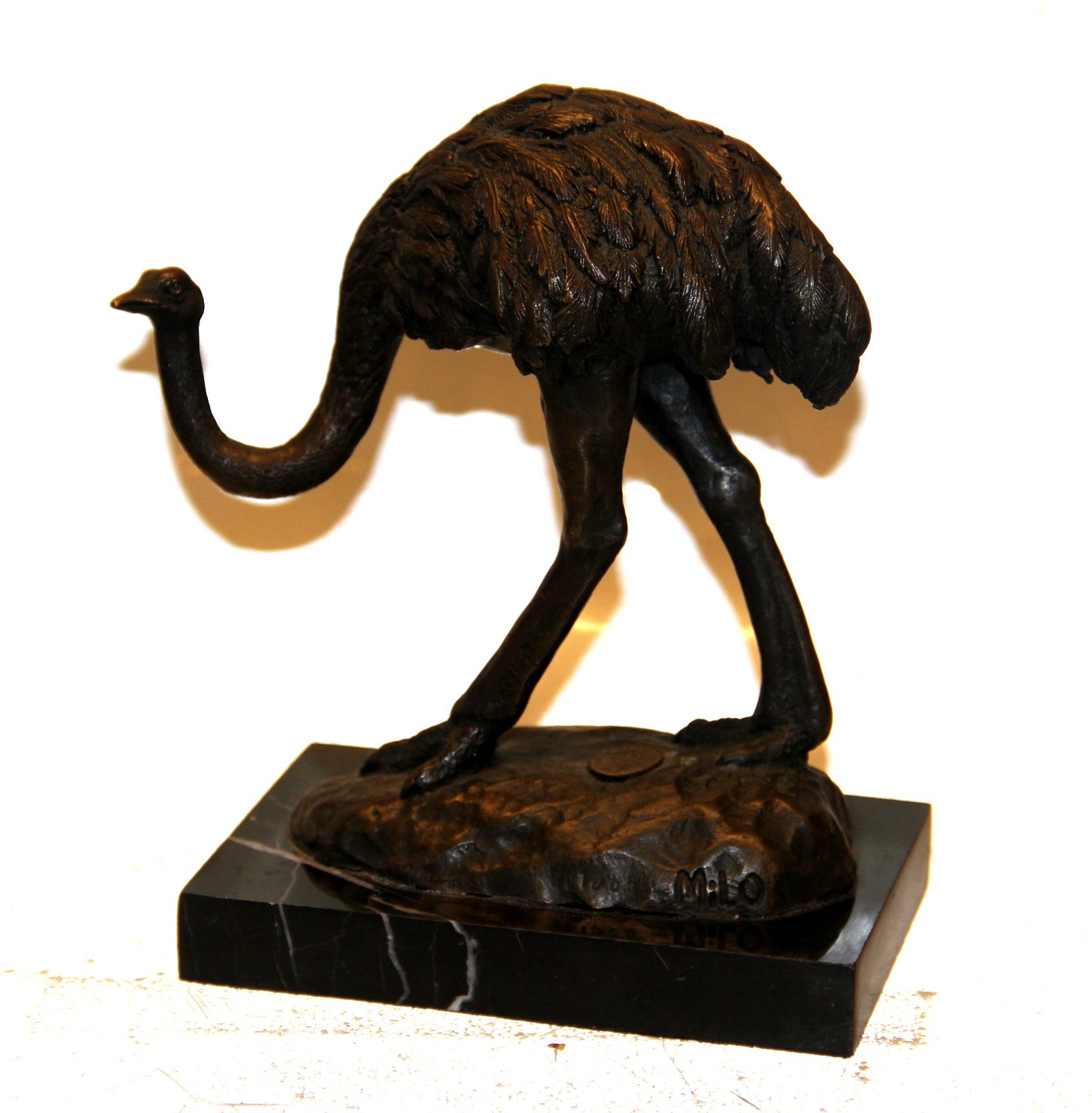 Bronze Struds 18.5 cm EMU på base af sort marmor 13.5 x 8.5 cm Signeret MILO