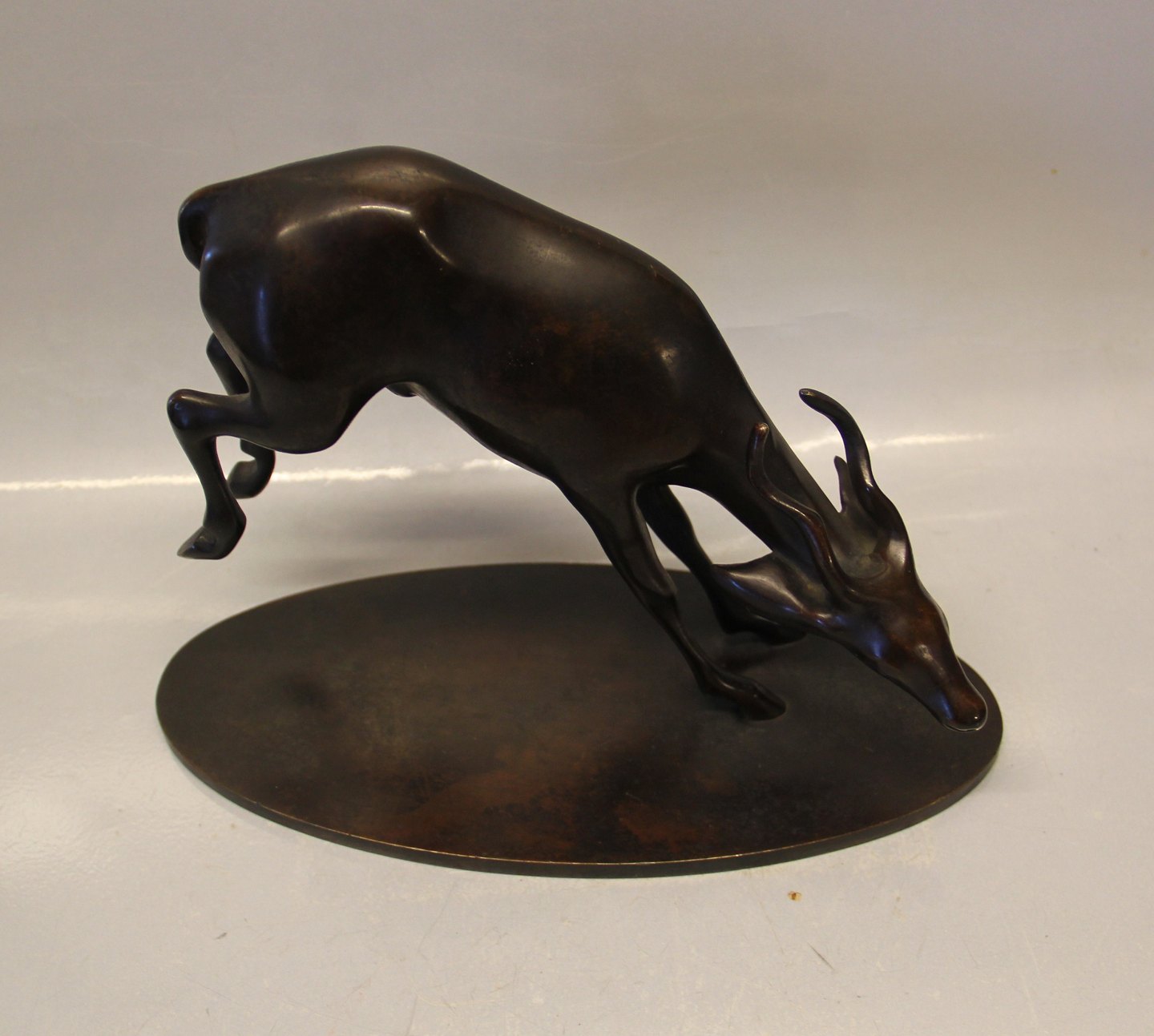 Beskrivelse: Bronze Antilope Signeret JR DK2 Dansk Kunsthandel 17 x 24 x 10.5 cm