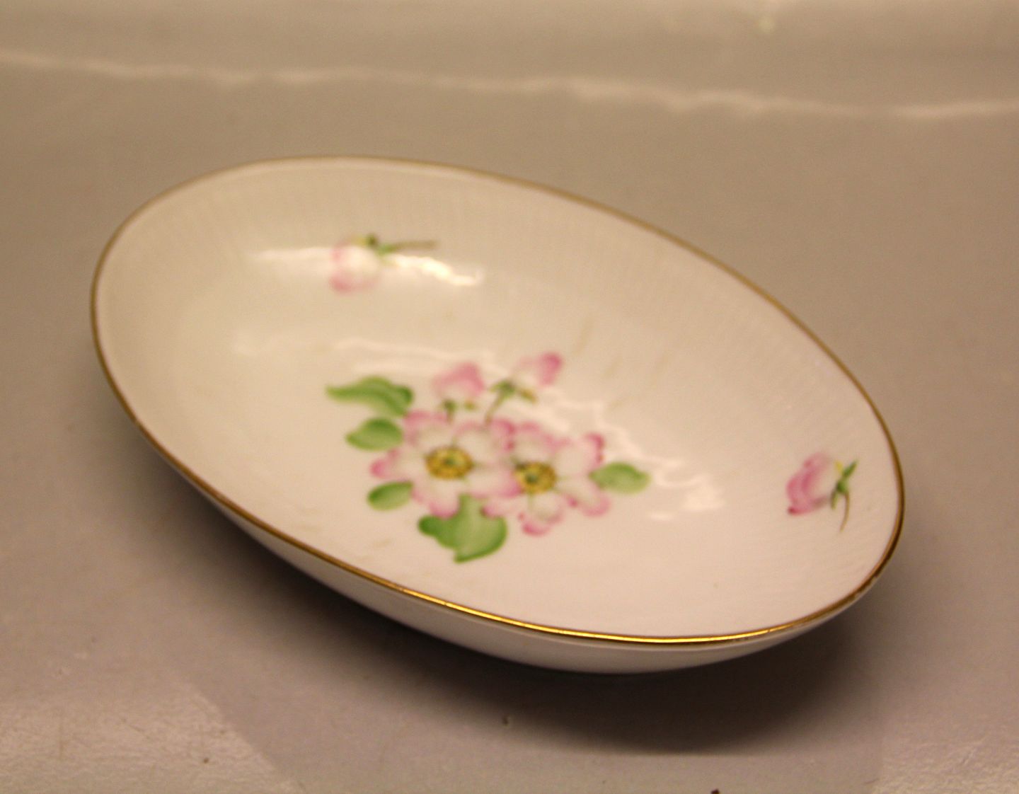 039 Oval kageskål 22.5 cm(314) Bing & Grøndahl Princesse Margrethe - Hvidt riflet porcelæn, æbleblomst og glansguld, form 505 polerguld, form 130. I fin og hel stand