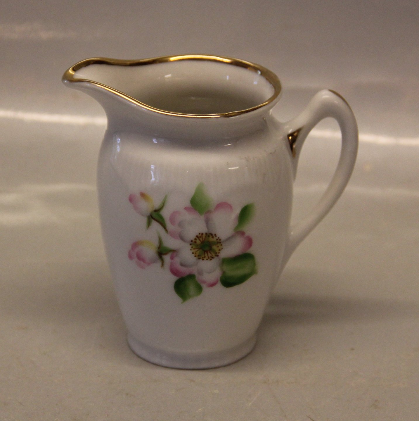 189 Flødekande Bing & Grøndahl Princesse Margrethe - Hvidt riflet porcelæn, æbleblomst og glansguld, form 505 polerguld, form 130. I fin og hel stand