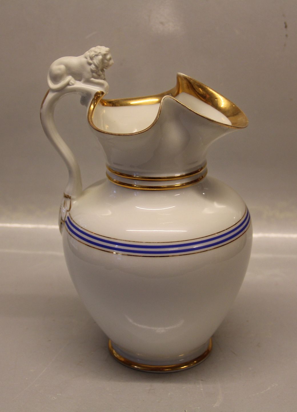 Bing & Grøndahl Antik Løvekande med guld og blå linnier 25.5 cm med intakt låg