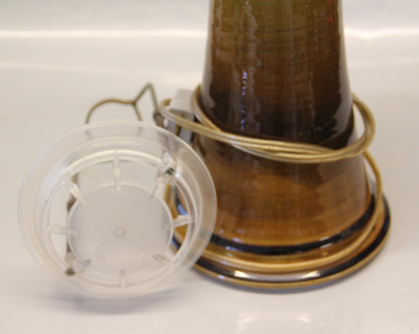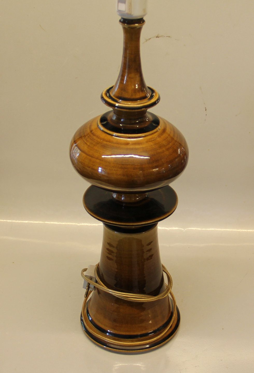 Beskrivelse: Kähler lampe 46 cm Poul Erik Eliasen Flot brun Glasur Kaehler Dansk Keramik lampe med fatning