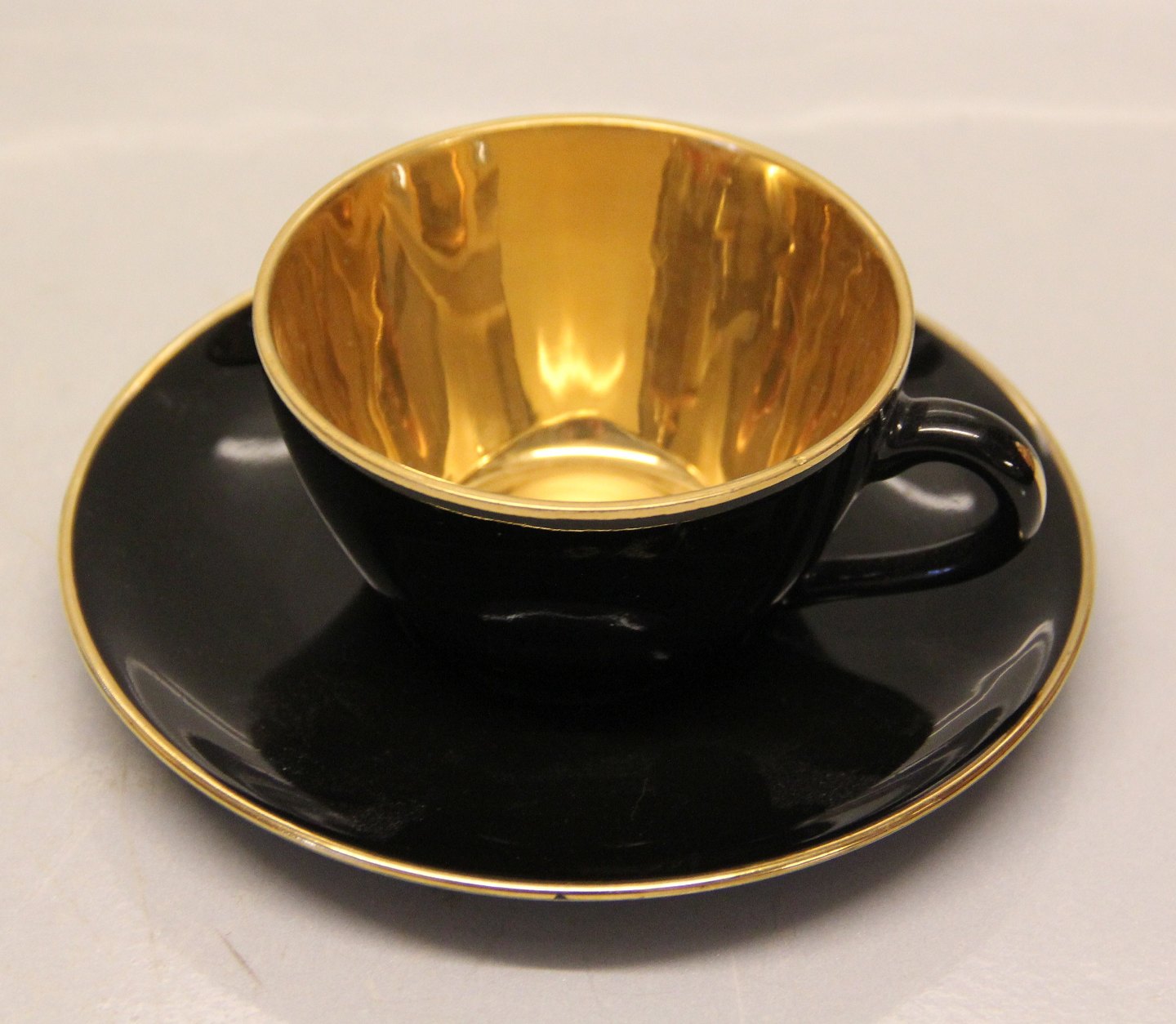 0 x 180 1/8 Sort mokkakop med guld 4 x 7.5 cm og underkop 12 cm