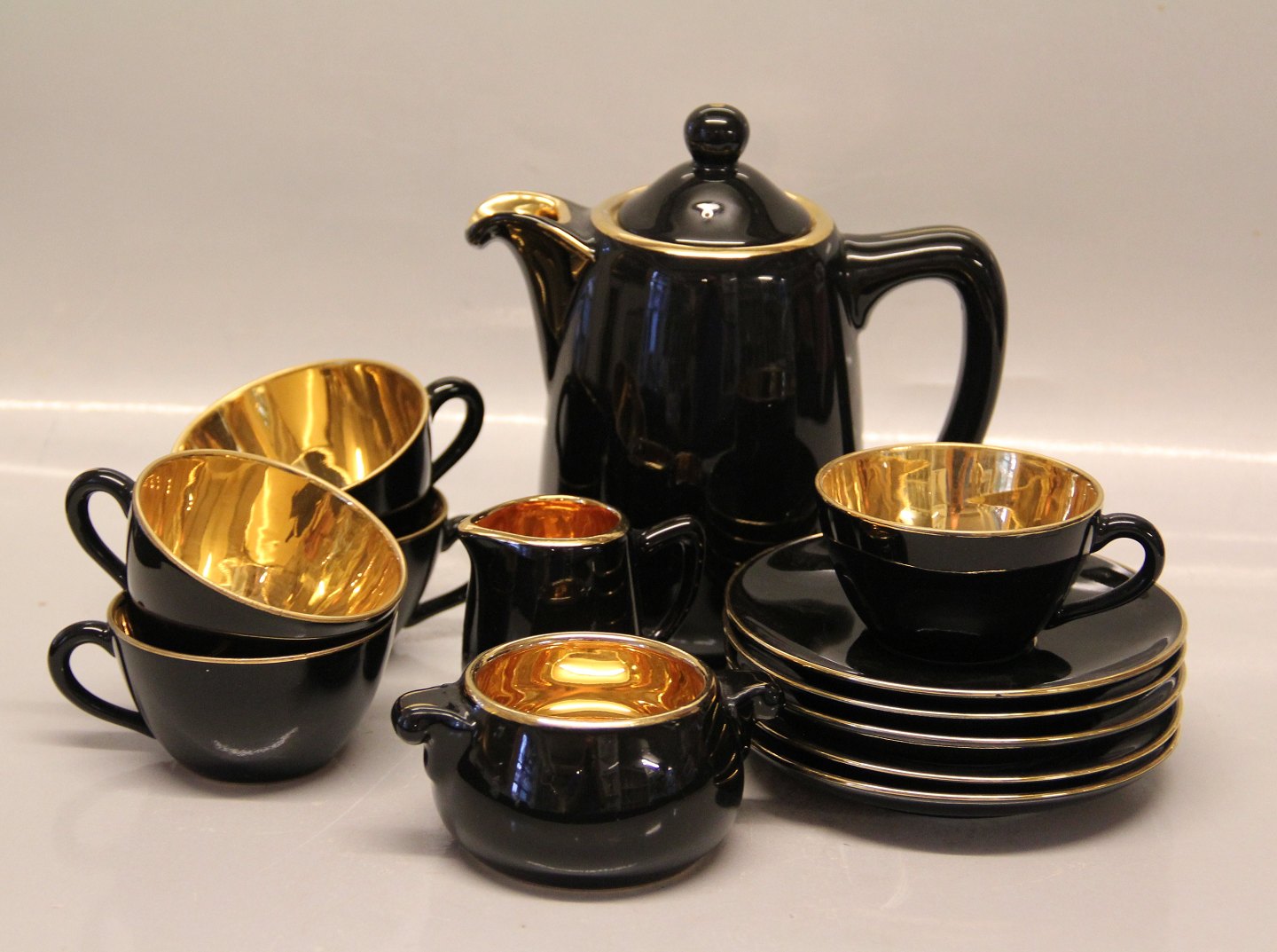 0 x 014 C Sort Mokkakande 14 cm med guld