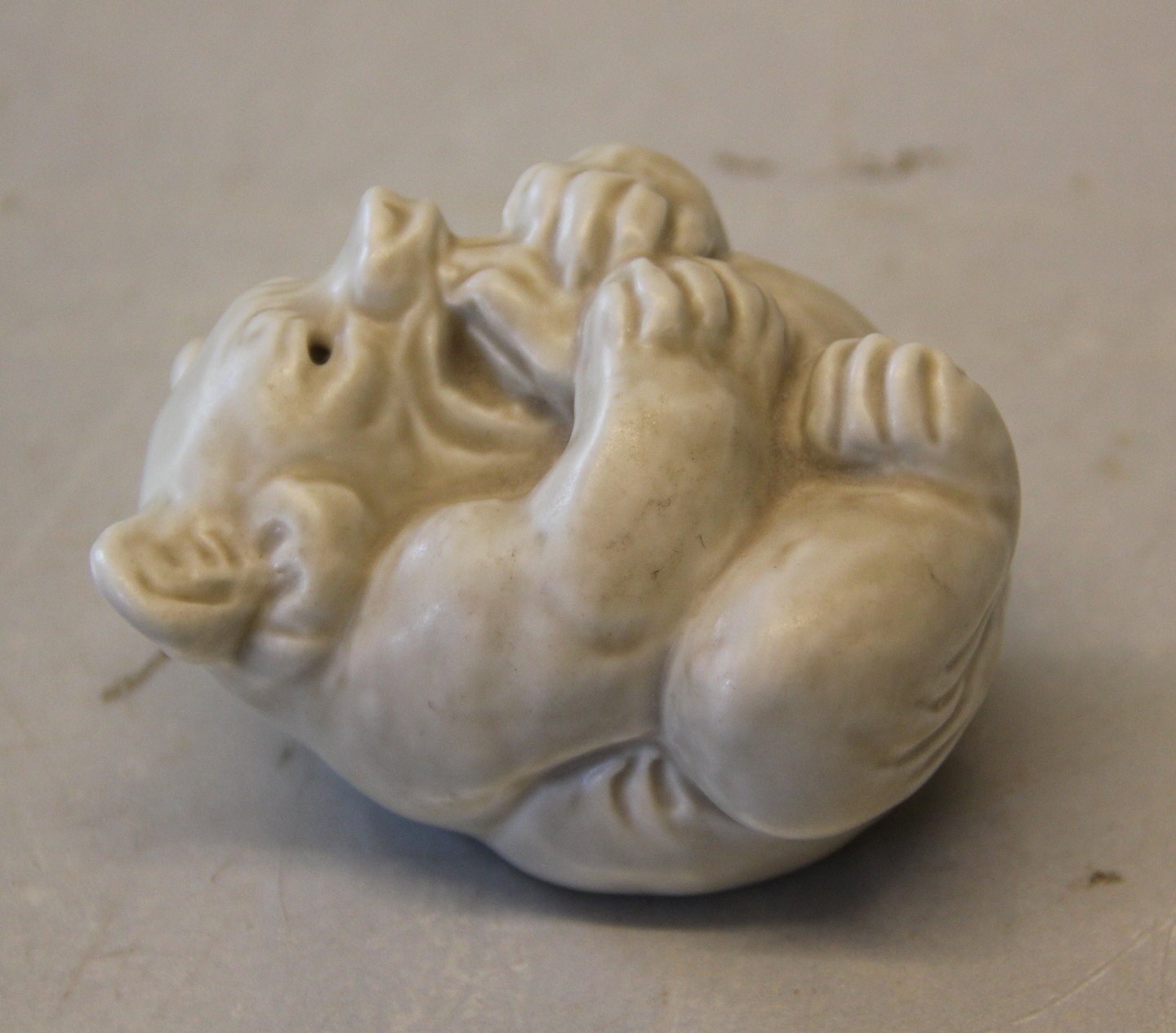 21434 Kgl. Celedon glasseret bjørneunge på ryggen (1 49 234) Knud Kyhn, feb. 1957