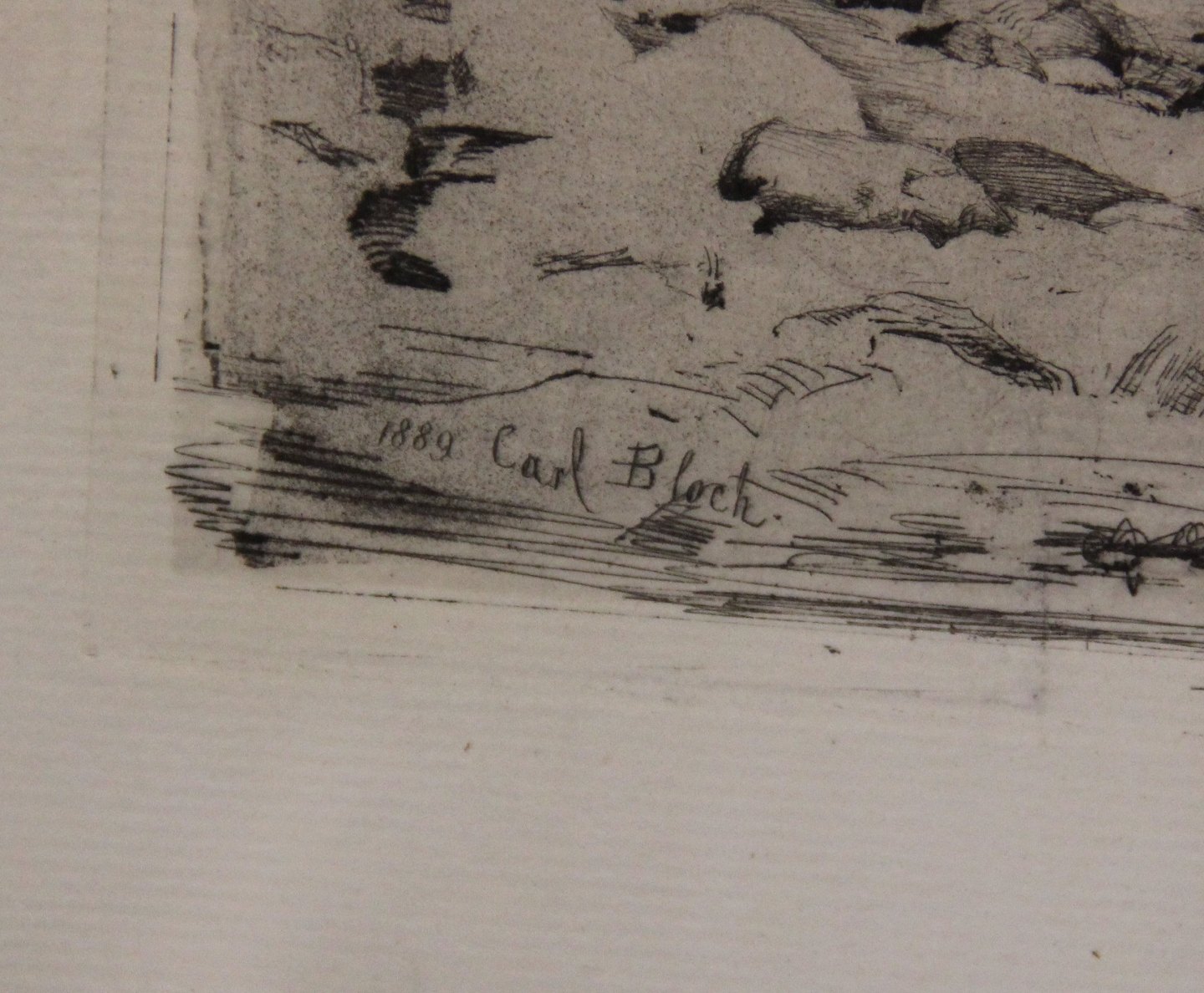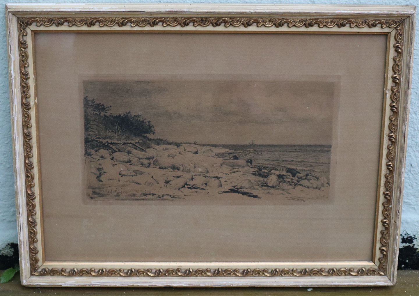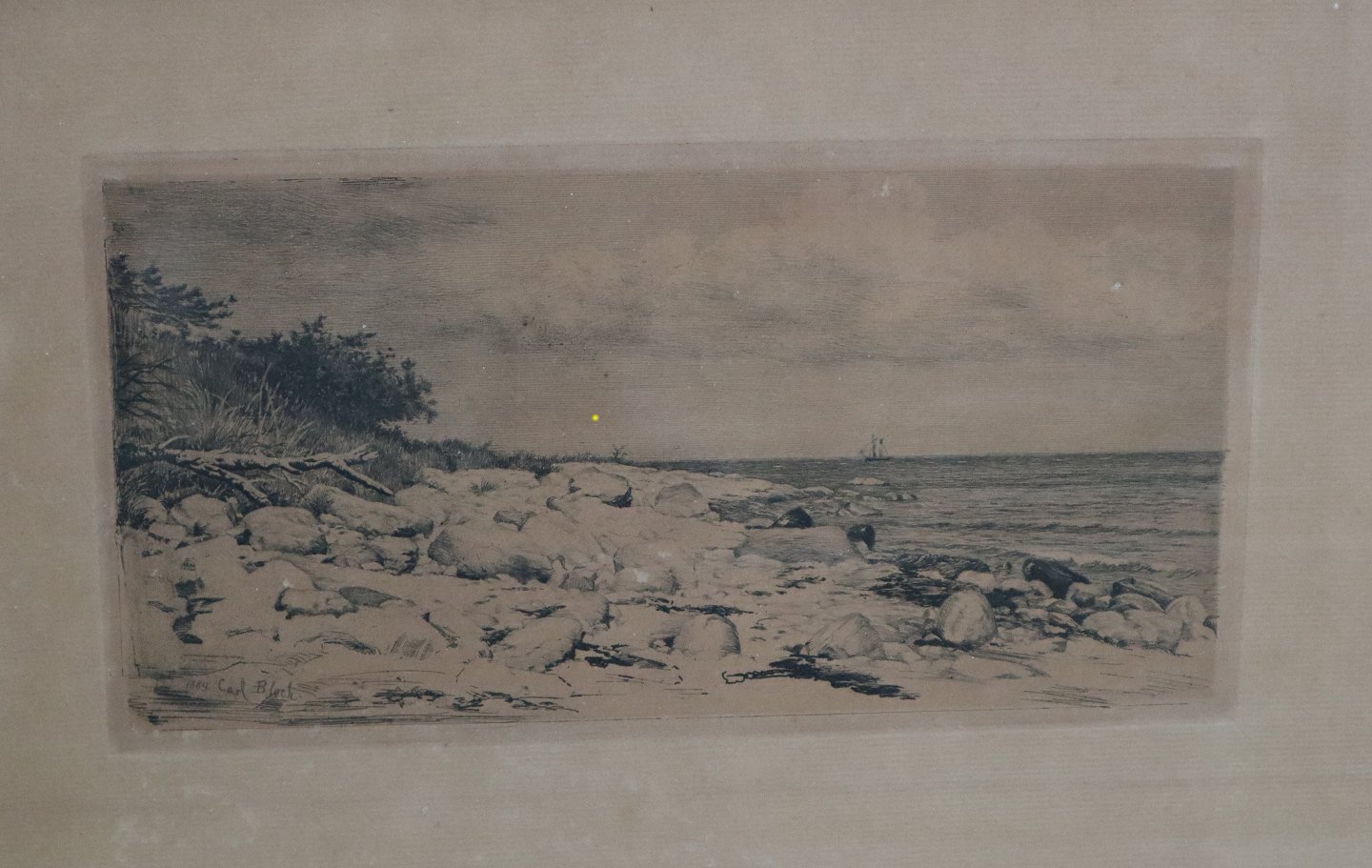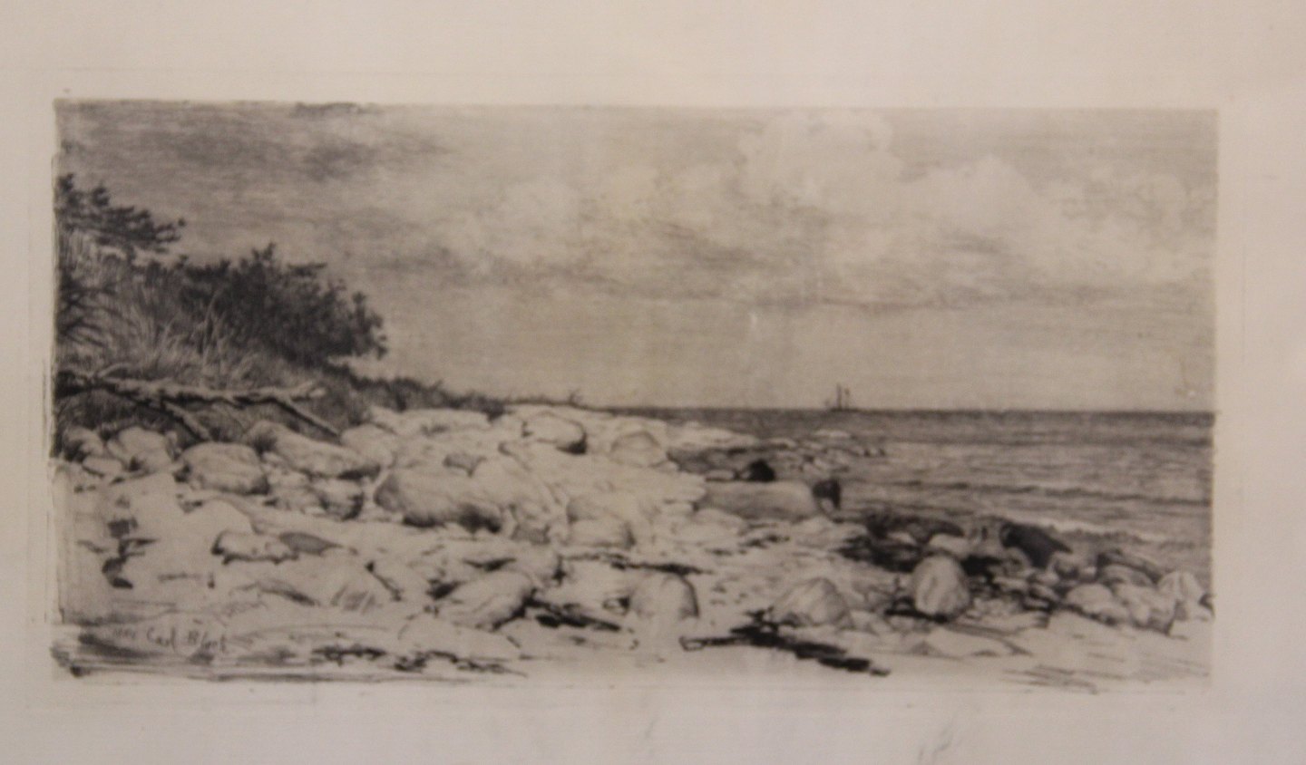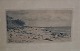 Carl Bloch Radering af kystlandskab 1889 29 x 40 cm iinklusiv gl. sort træramme