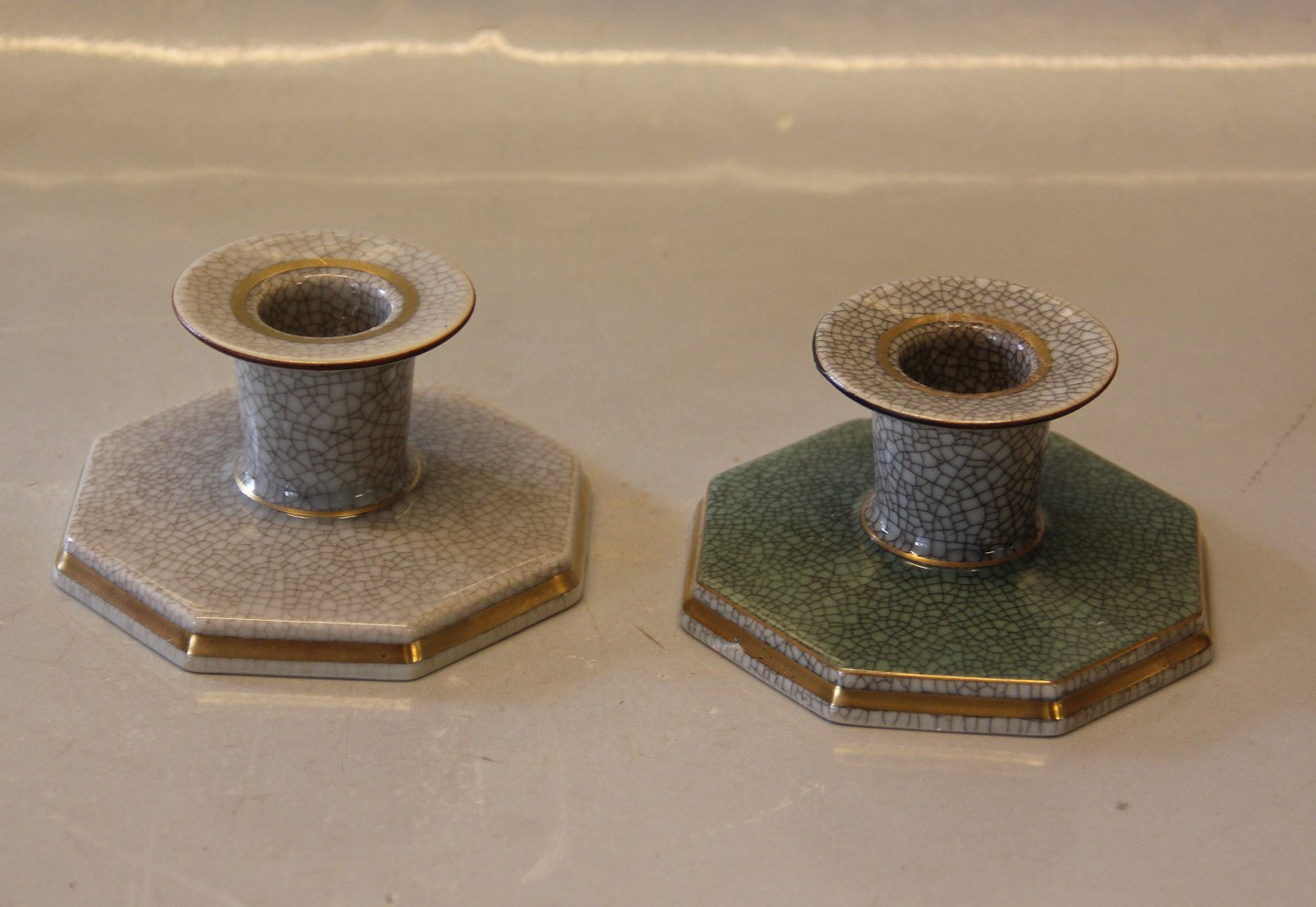 Kongelig Dansk Craquelé, Craquele 457-3334 Kgl. Lysestager grøn, grå og guld  5.5 x 9.8 cm