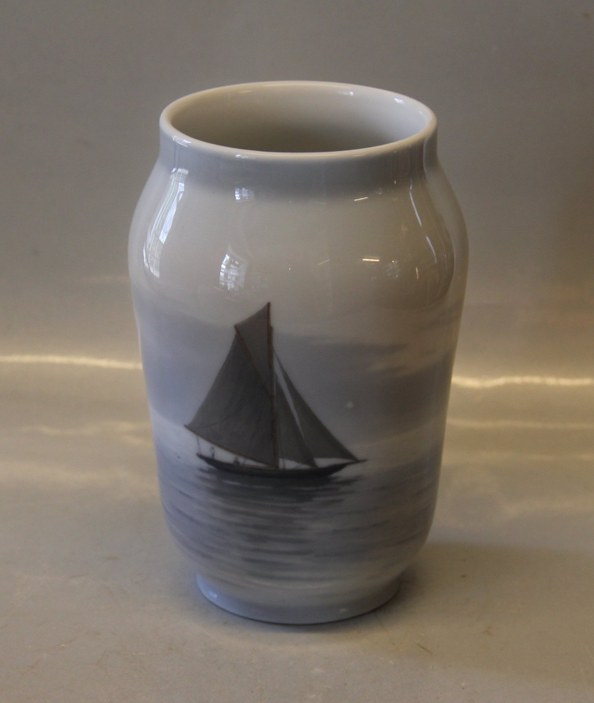 Beskrivelse: 0579-108 Kgl. Vase 17 cm Marine dekoration sejlskib og måger fra Royal Copenhagen I hel og fin stand