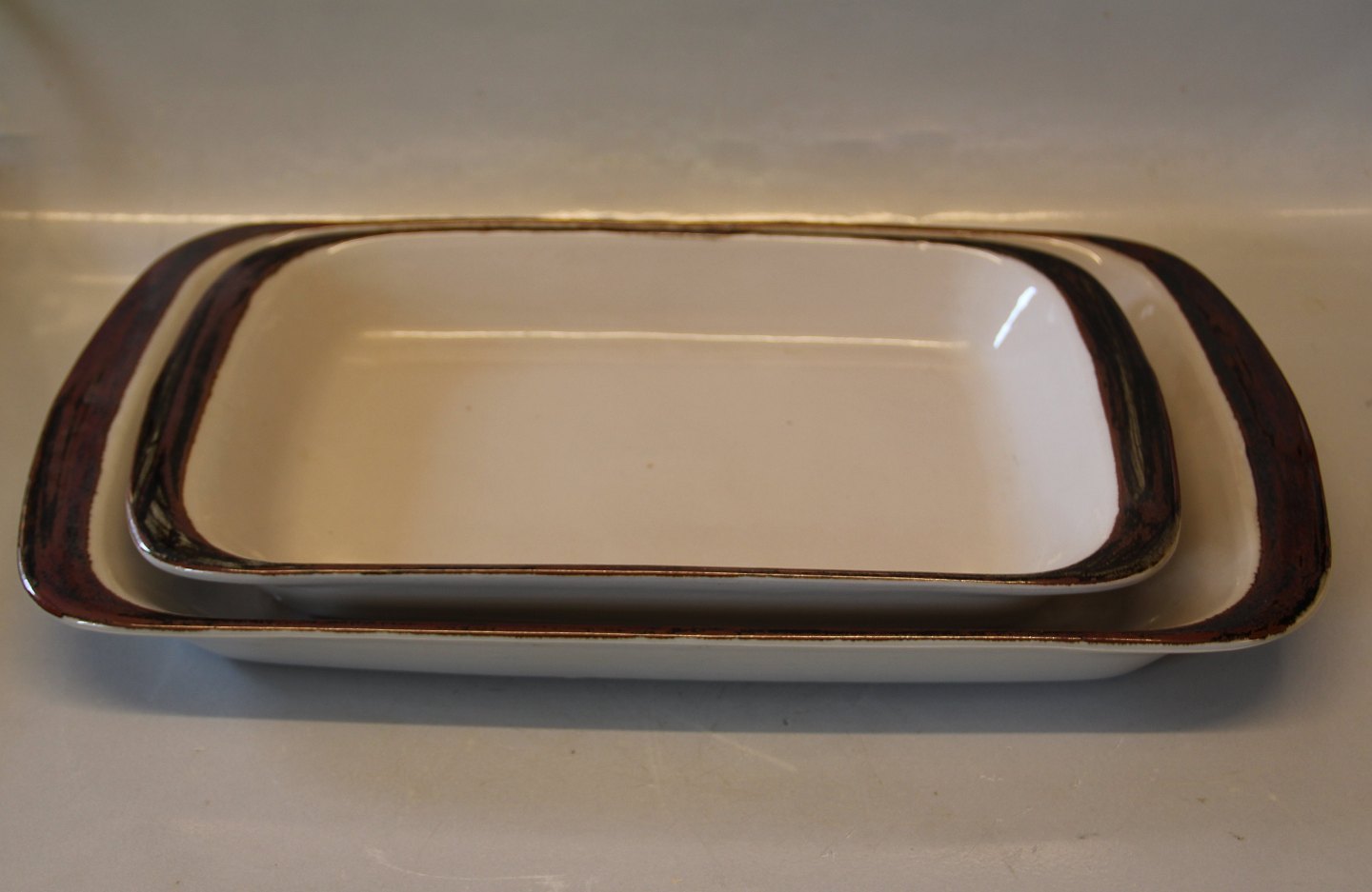 Rektangulært stegefad 4 x 41.5 x 23 cm Thule fra Desire: Rødbrune fjelde, isgrønt hav, sagn og eskimotegn har inspireret til stellet Thule. Ved fremstillingen er der lagt vægt på brugsegenskaberne, hvor Thule gennem en særlig hærdning i brændingen er gjort meget stærkt i brug.