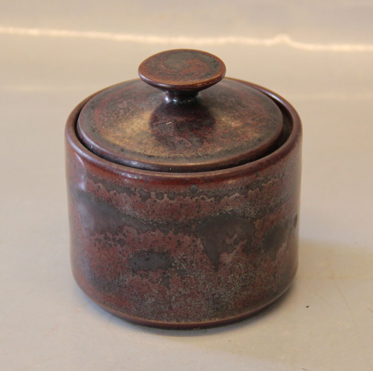 Sukkerskål med låg 10 x 9 cm Thule fra Desire: Rødbrune fjelde, isgrønt hav, sagn og eskimotegn har inspireret til stellet Thule. Ved fremstillingen er der lagt vægt på brugsegenskaberne, hvor Thule gennem en særlig hærdning i brændingen er gjort meget stærkt i brug.