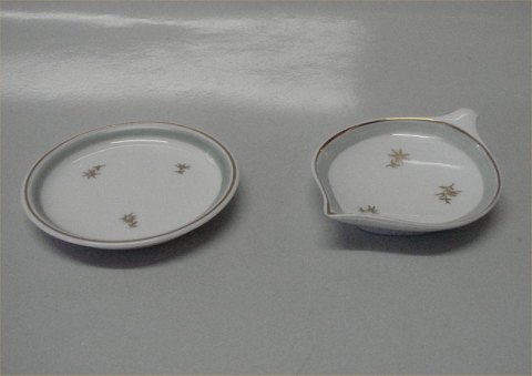 Hasselnød Bing & Grøndahl B&G : Hvidt porcelæn, hasselnødder i guld, grønne blade, grønt bånd og guldkant, form 601 Helsingør I fin og hel stand. Hazelnut - Haselnuss