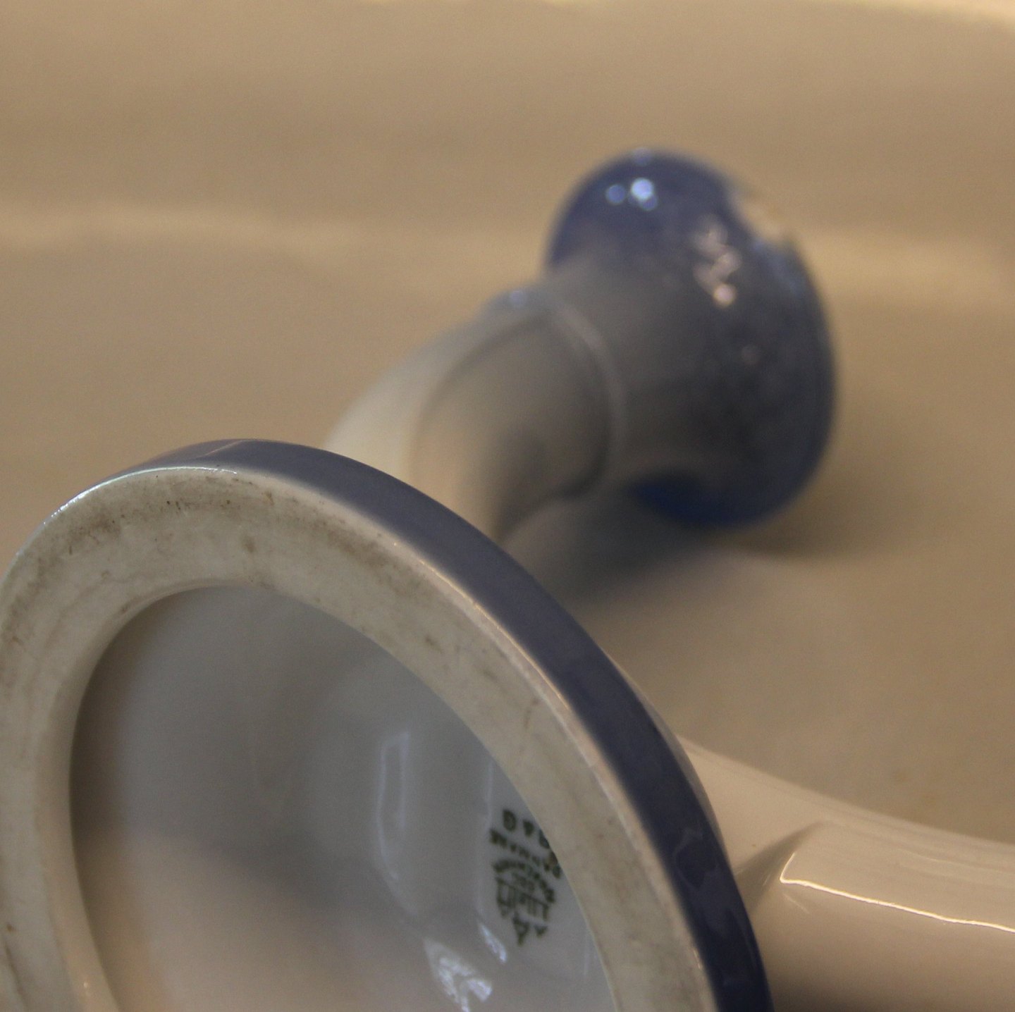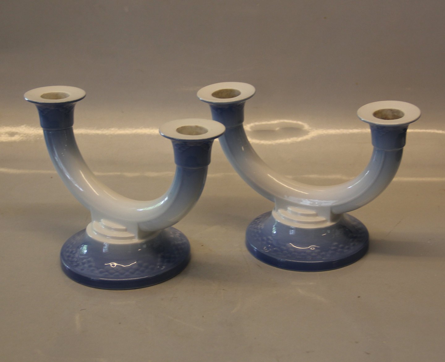 Beskrivelse: Bing & Grøndahl Blå Tone 235 To-armet lysestage 13,5 cm I hel og fin stand Blue Tone Seashell
