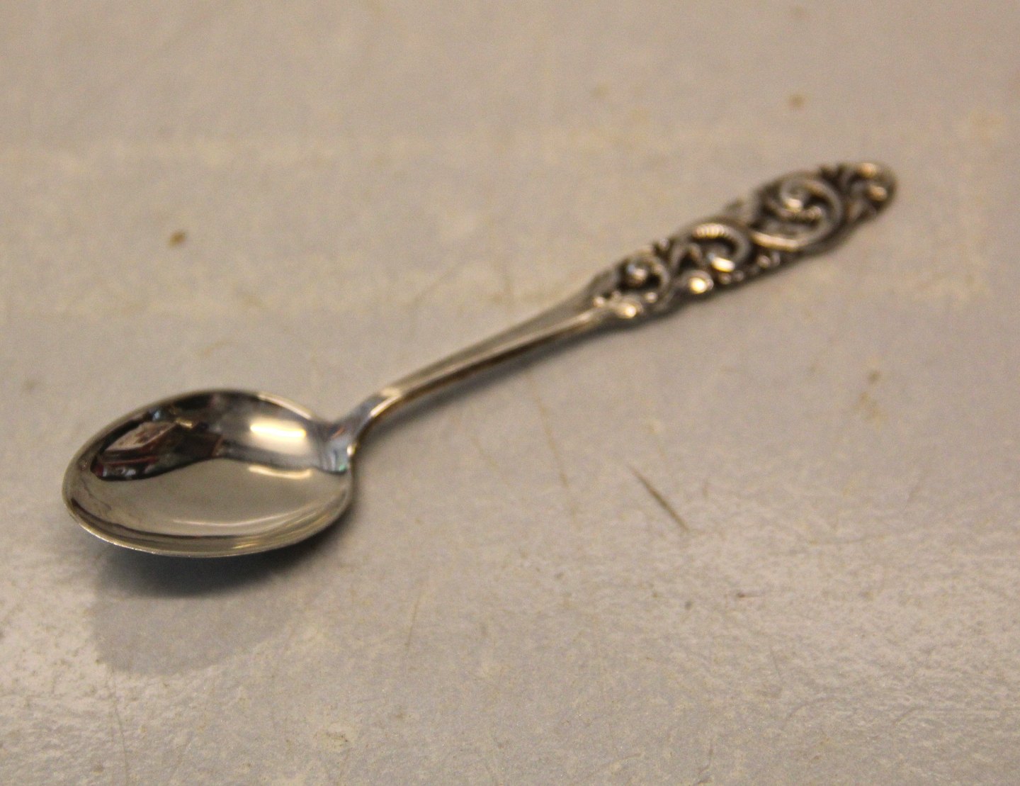 Norsk Tele Sølv 830 Kaffeske 10 cm Gennembrudt blomster ornamentik: akantus Norge MN = Norsk Mønster