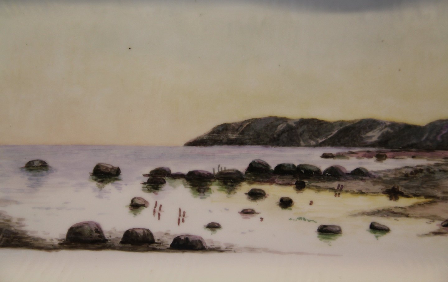 Maleri på Kongelig Dansk Svejfet porcelænsfad ca 1850-1880 25 x 41 cm