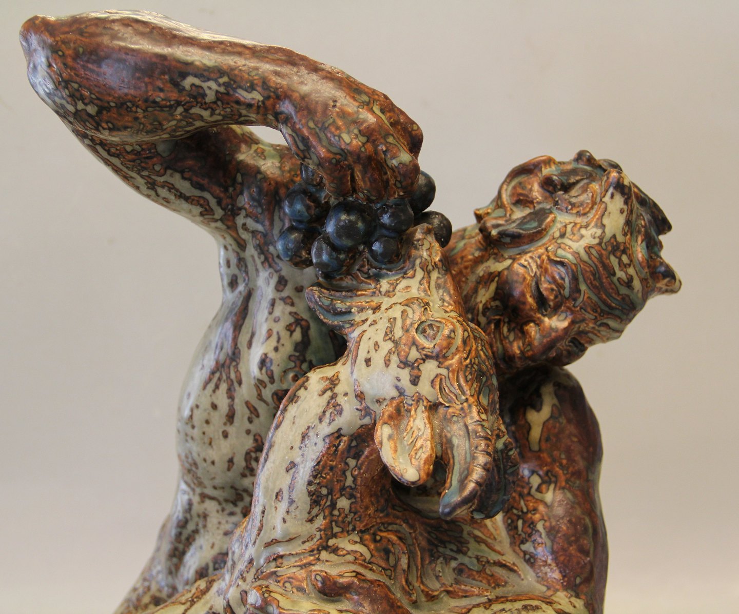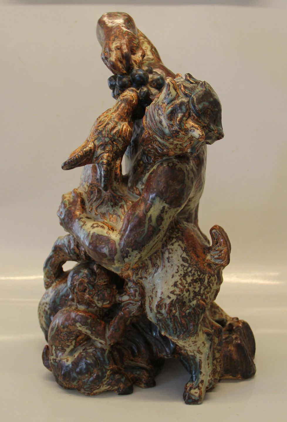 Beskrivelse: Royal Copenhagen stentøj Faun med gedebuk og unge ca 43 x 30 cm (15 kg) Knud Kyhn 1940 Sung Glasur I fin og hel stand