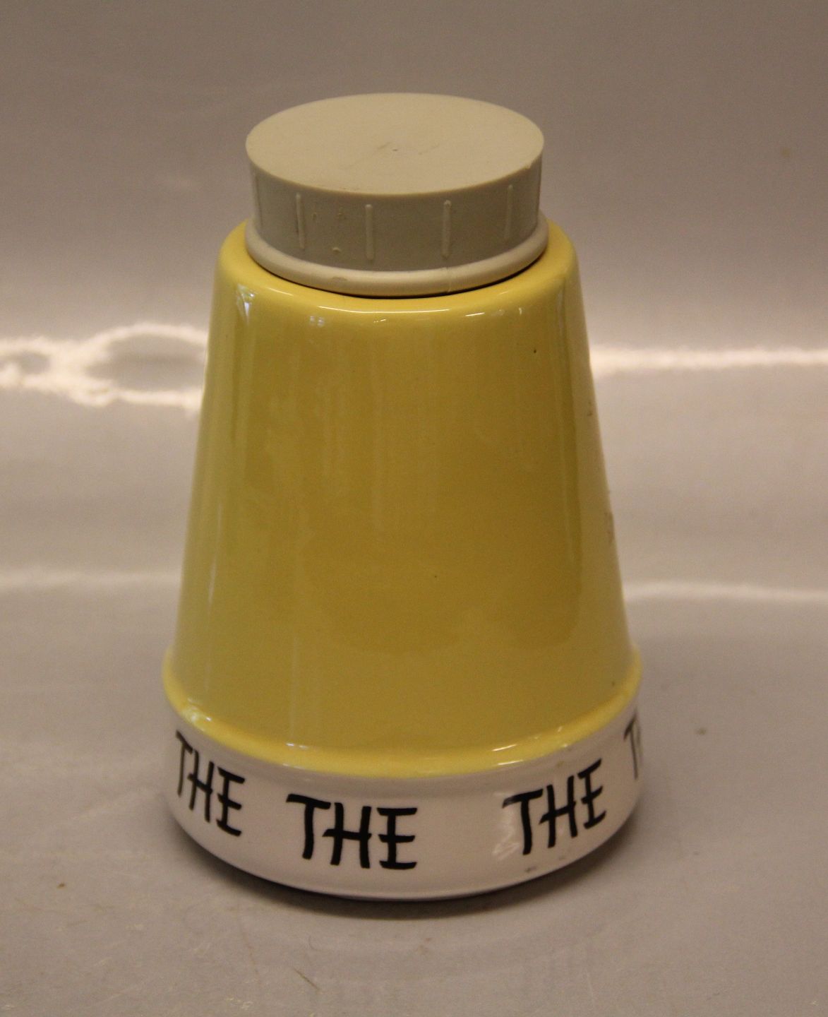 Beskrivelse: Kronjyden "The" 14.5 cm gul Krydderikrukker og køkkenkrukker fra Kronjyden Randers Retro Pastel