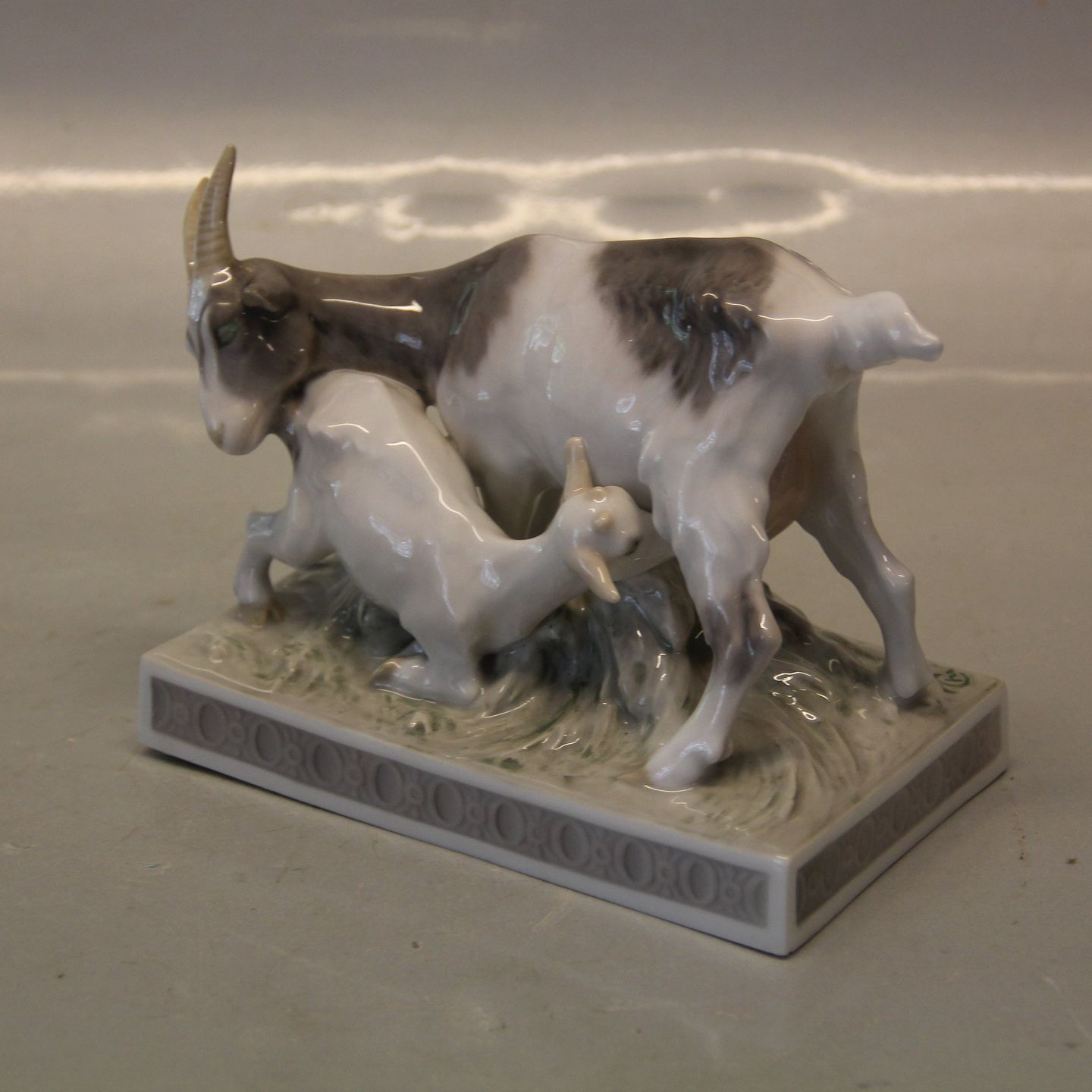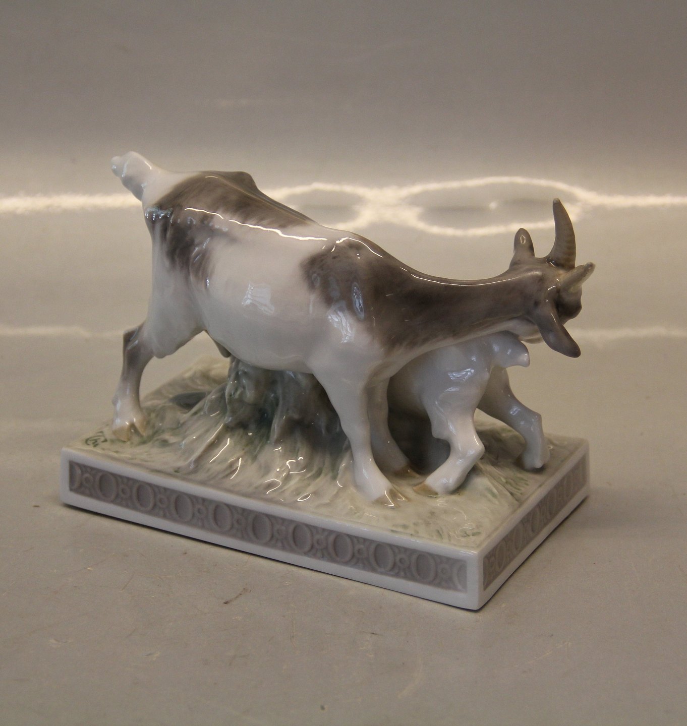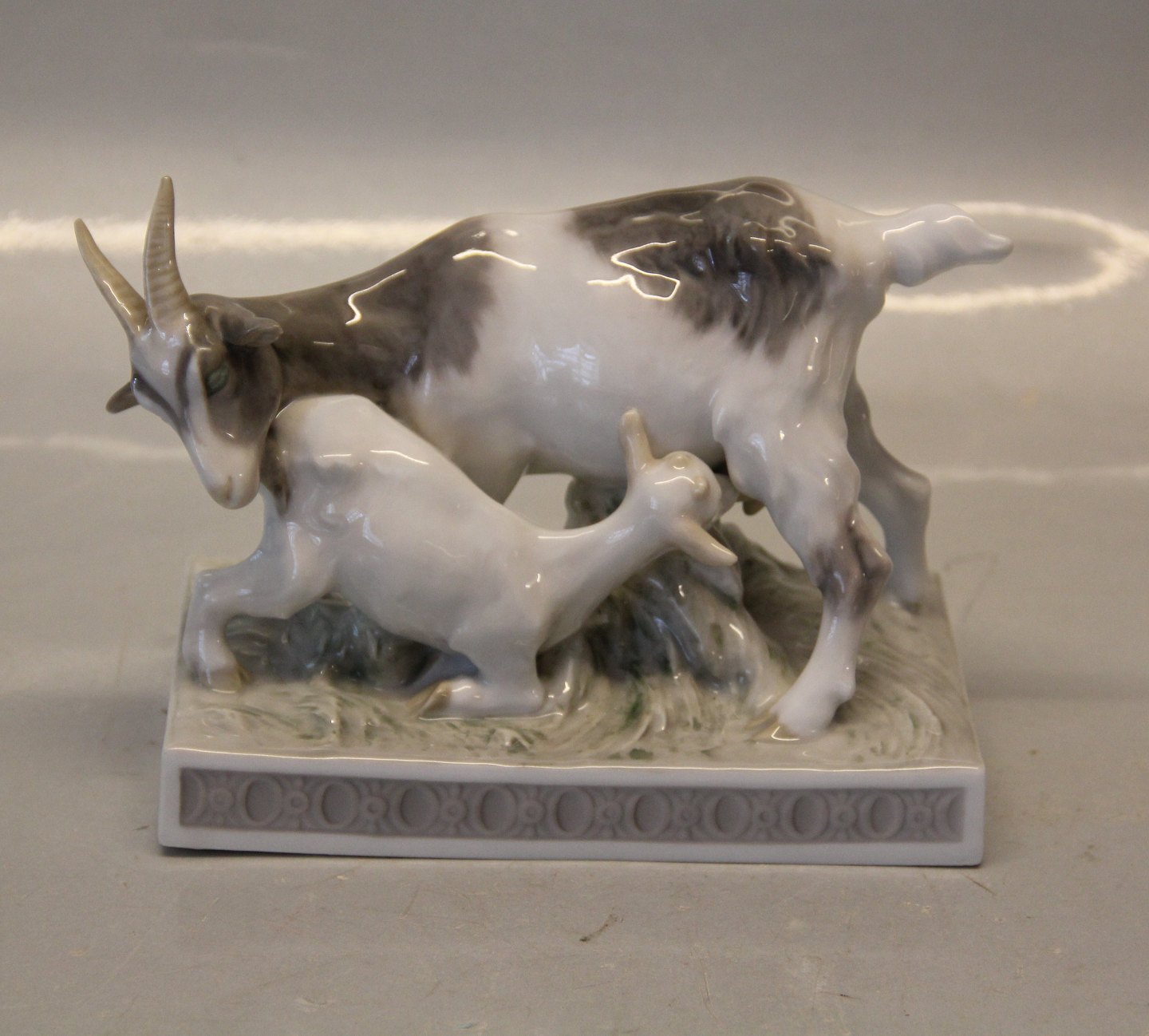 Beskrivelse: Kgl. 0665 Kgl. Ged & kid på firkantet fod Christian Thomsen 1905 12 x 16 cm fra Royal Copenhagen I hel og fin stand