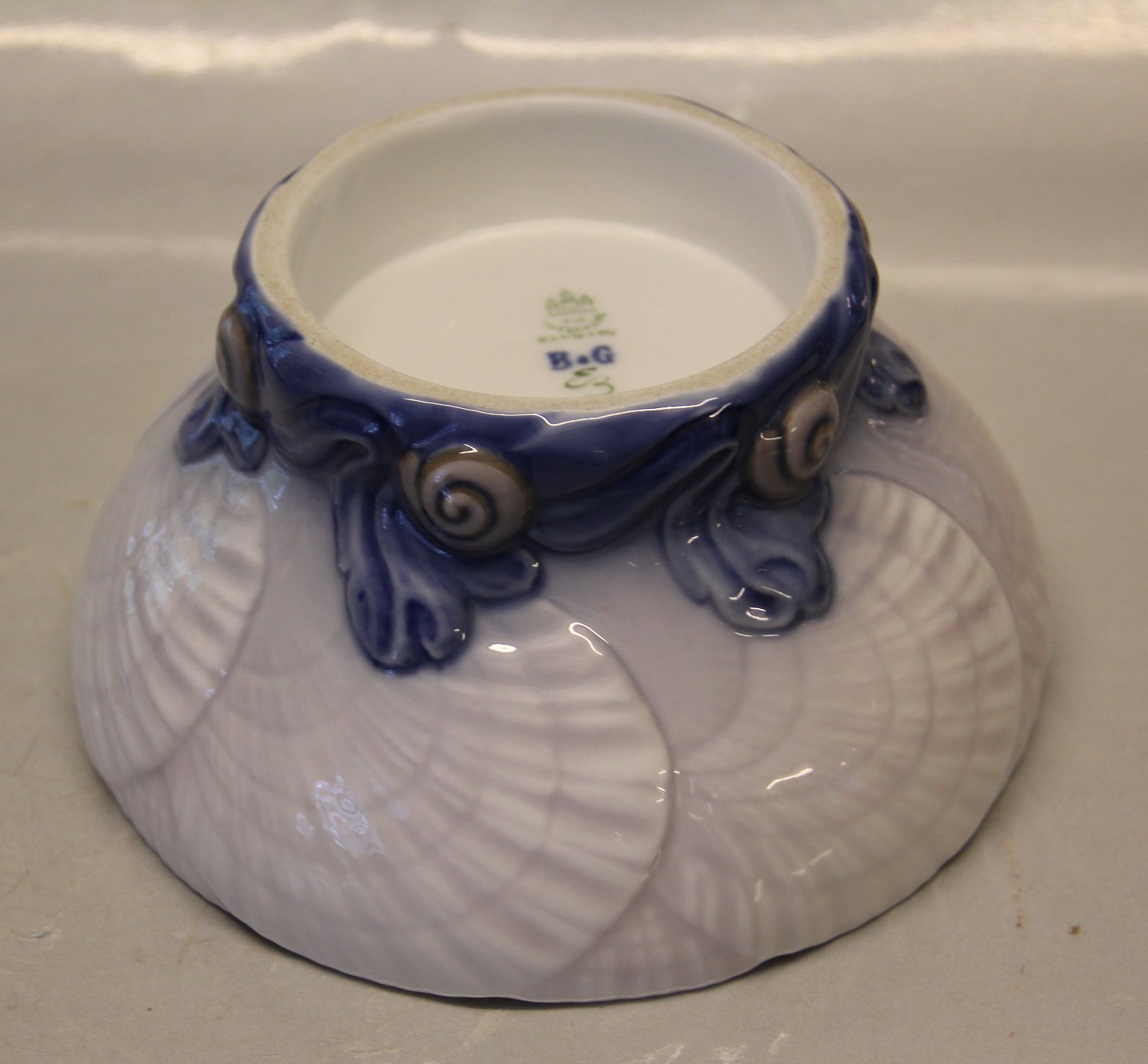 Bing & Grøndahl B&G 1146 Art Nouveau skål - muslinge, søpindsvin og tang i relief 9 x 18 cm