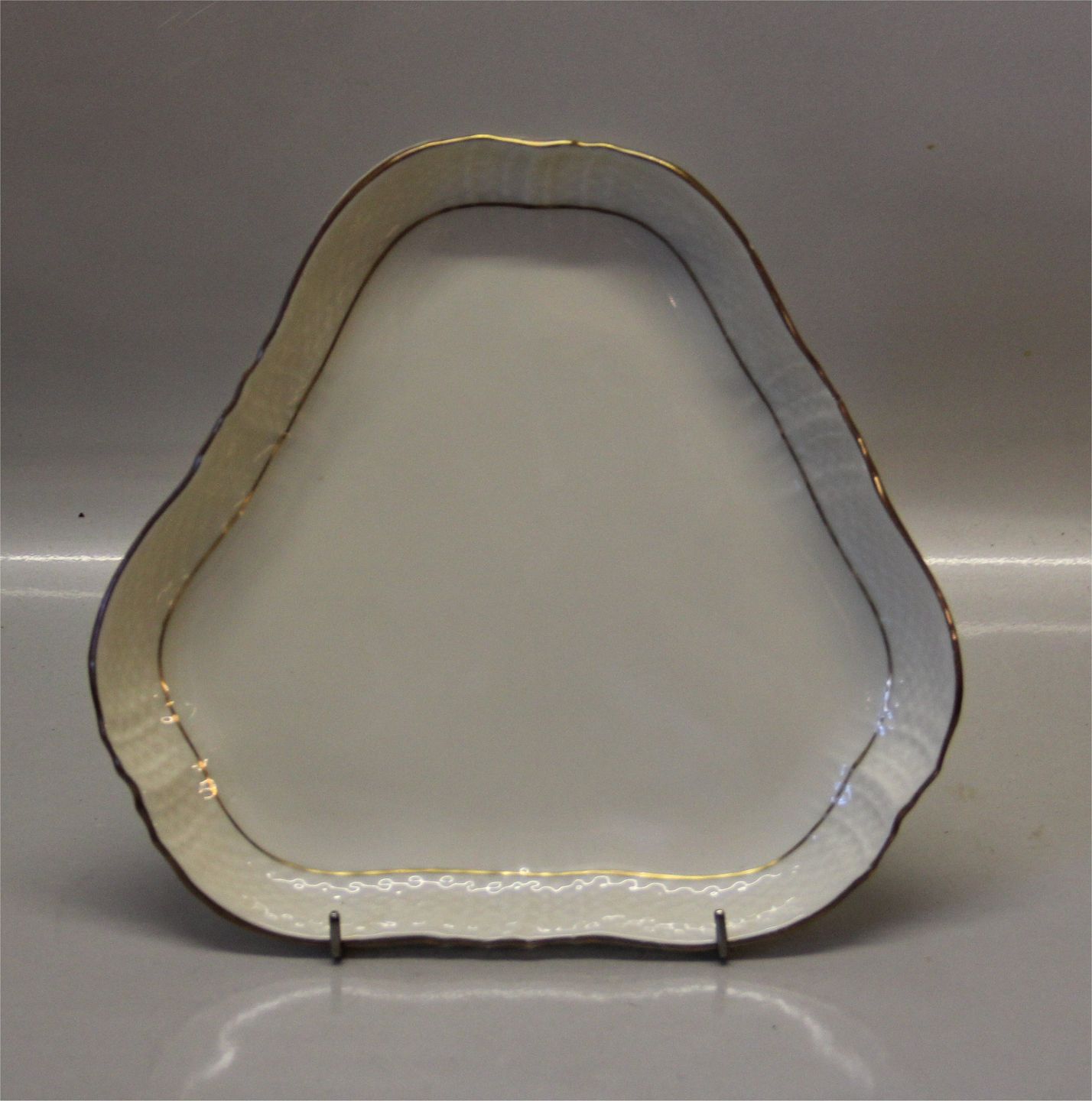 1526-878 Trekantet fad 21 cm # 878 Kongelig Dansk svejfet stel Crème med ENKELT guldkant I fin og hel stand