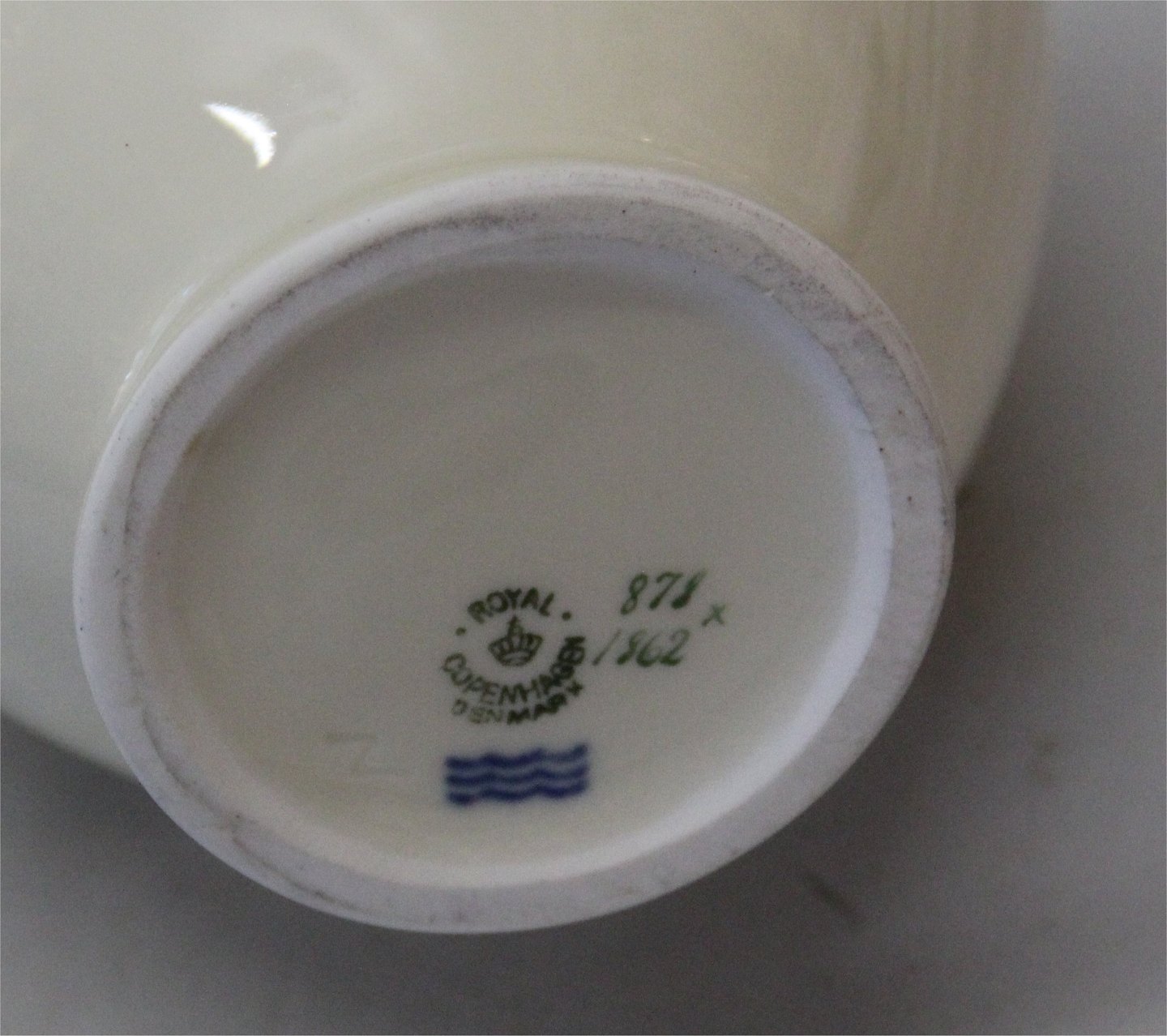 1862-878 Chokoladekande med låg 23 cm # 878 Kongelig Dansk svejfet stel Crème med ENKELT guldkant Royal Copenhagen I fin og hel stand