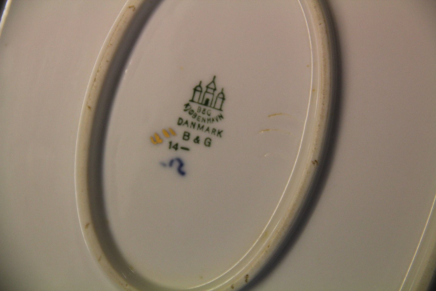 014 Stort ovalt stegefad 46 cm B&G Blåmalet Kipling Sommerfugl med guld