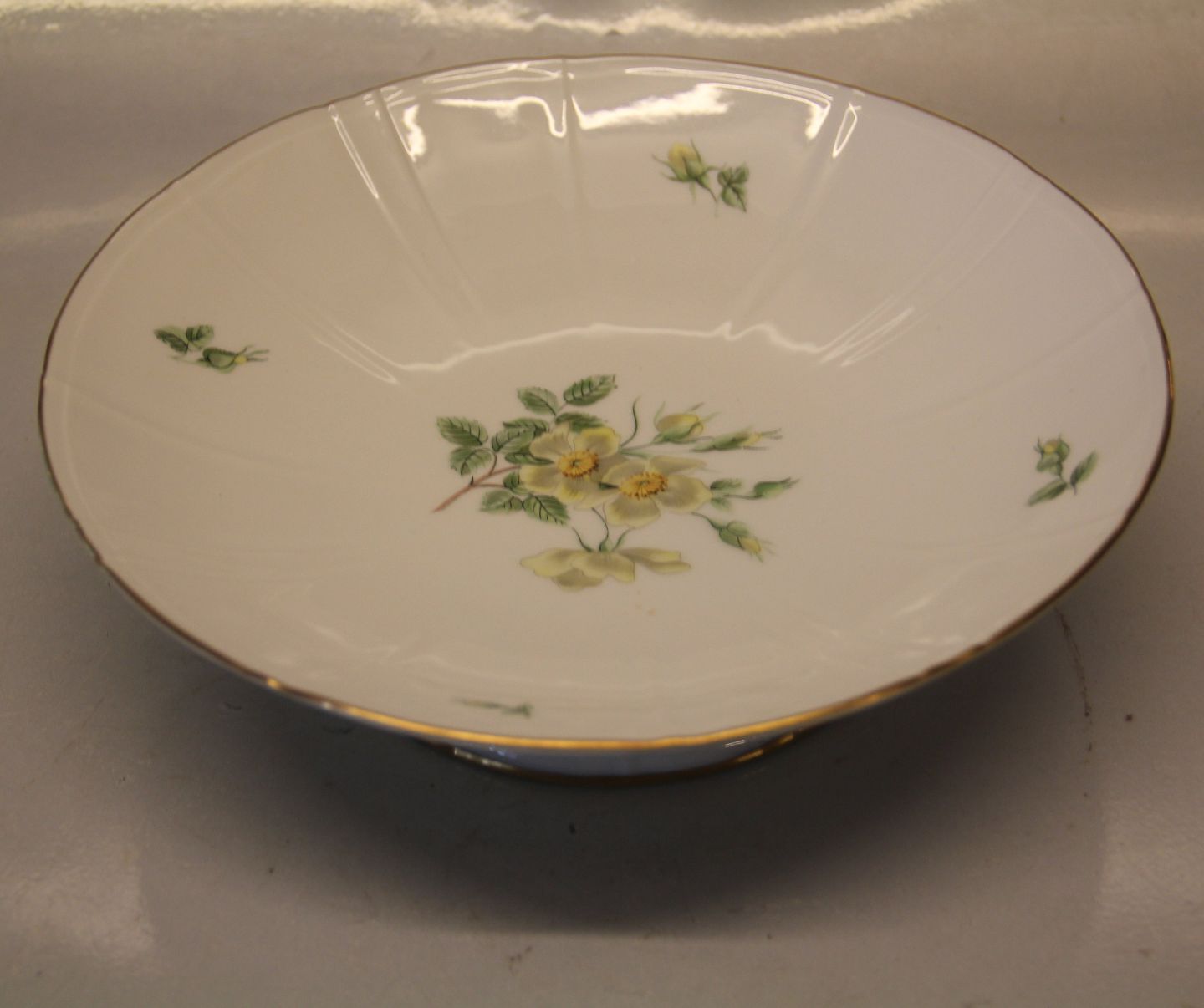 206 Stor skål på fod 24,5 cm (429) Bing & Grøndahl Klitrose Hvidt kantet porcelæn med bred guldkant og klitrose (Hyber - Scotch Rose). Bing & Groendahl I hel og fin stand