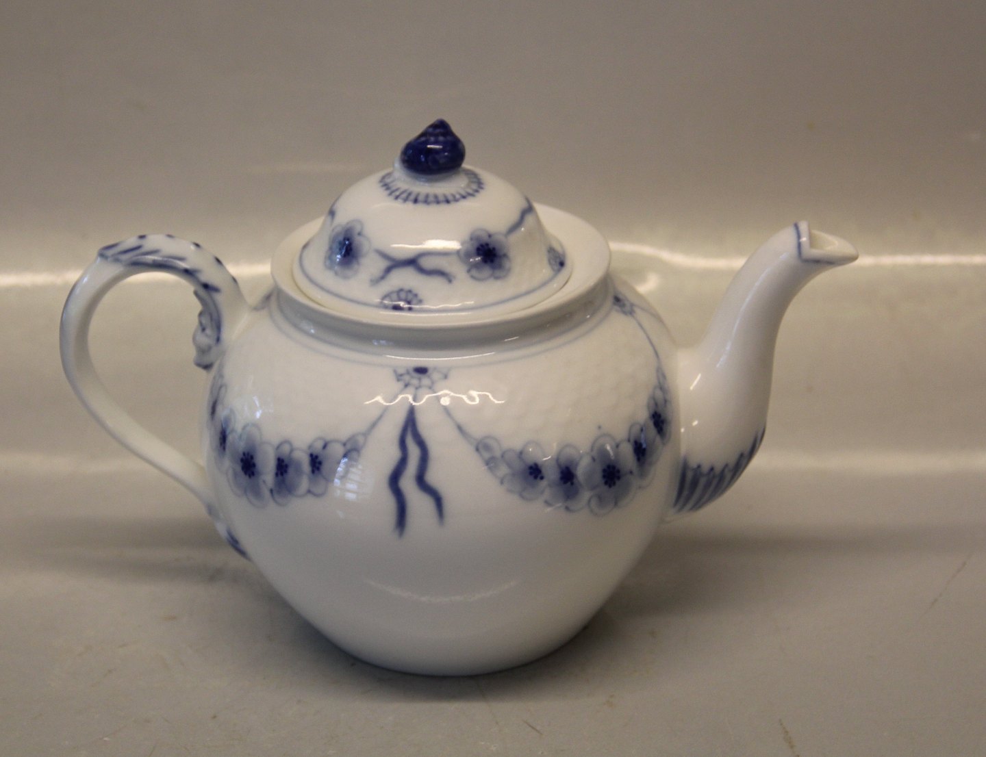 B&G Blå Empire porcelæn 092 Tekande, (mellem) 7,5 dl  (654) 15 x 24 cm med snegl på låget