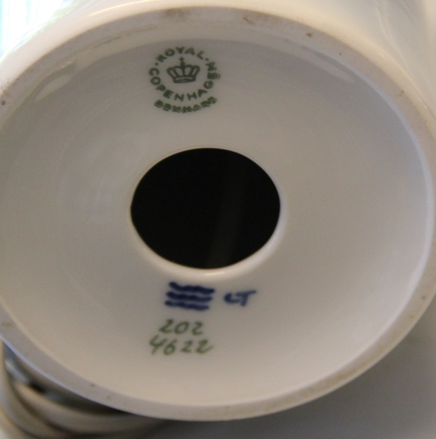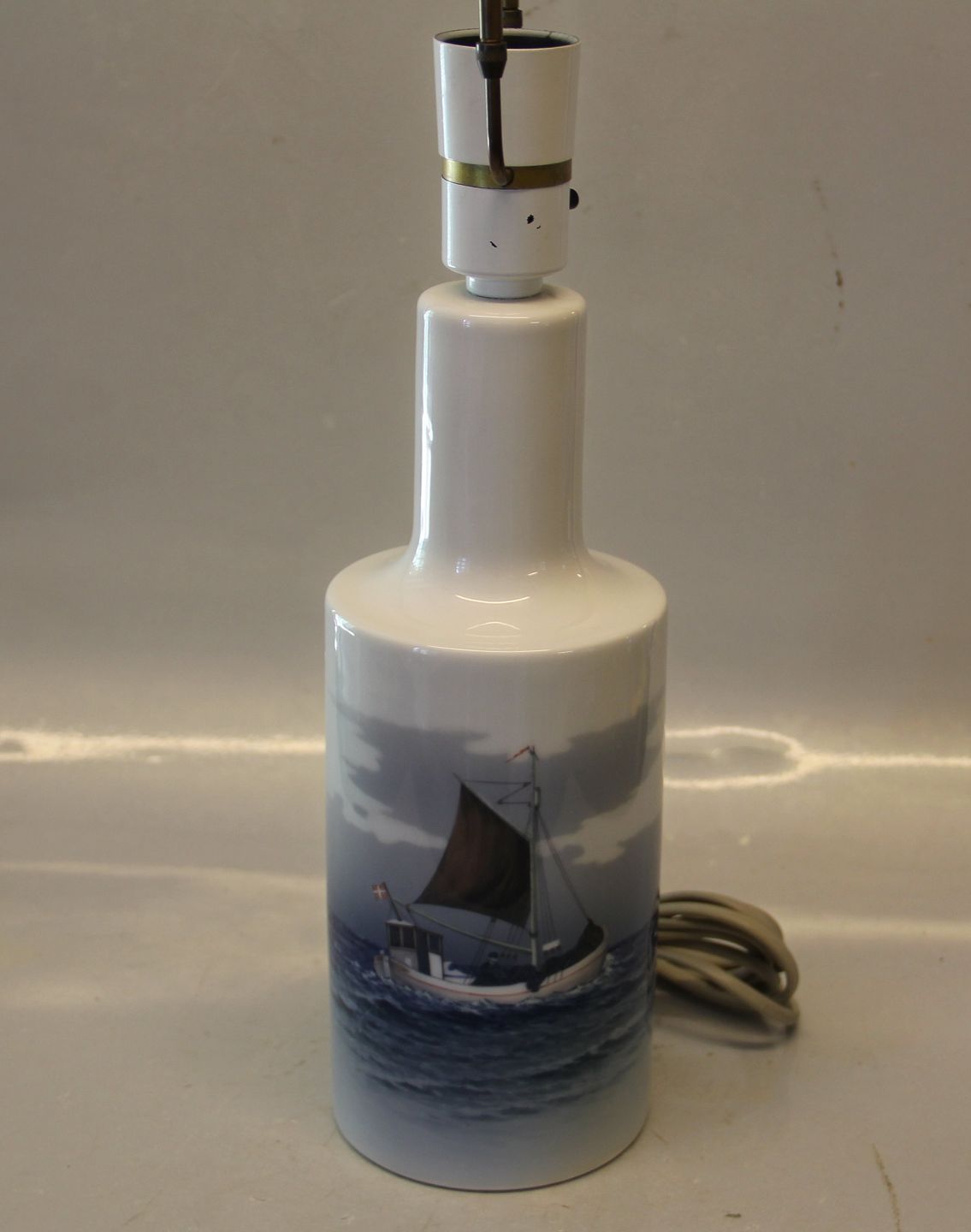 Beskrivelse: 202-4622 Kgl. Lampefod med fiskekutter - sejlskib ca 28 cm fra Royal Copenhagen I hel og fin stand