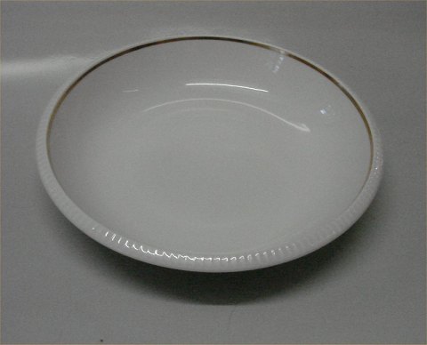 022 Stor dyb tallerken 20,5 cm (322) Vega B&G med smal guldbelægning på inderkanten . Form 674 er formgivet af Sigward Bernadotte. Denne form findes i hvidt, med bred guldkant (Gylden Sol), med grønt og guld (Perseus), med rødt og guld (Herkules) og beige og guld (Norma).