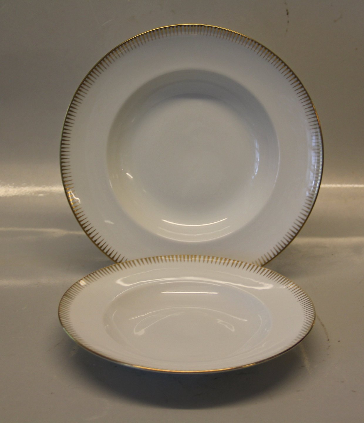 022 Stor dyb tallerken 24 cm (322) Luna Bing & Grøndahl B&G : Hvidt porcelæn, med pindemønster guldkant, form 601 Helsingør I fin og hel stand.
