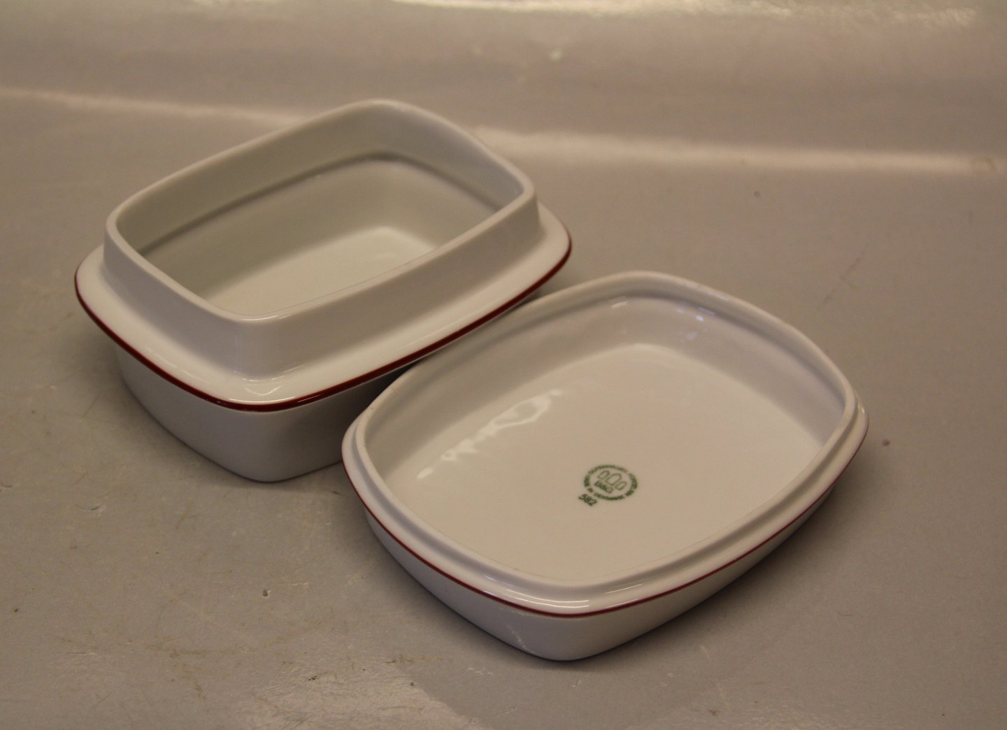 Rød Linje Bing & Grøndahl B&G 582 Smørskål med låg 7 x 14 cm