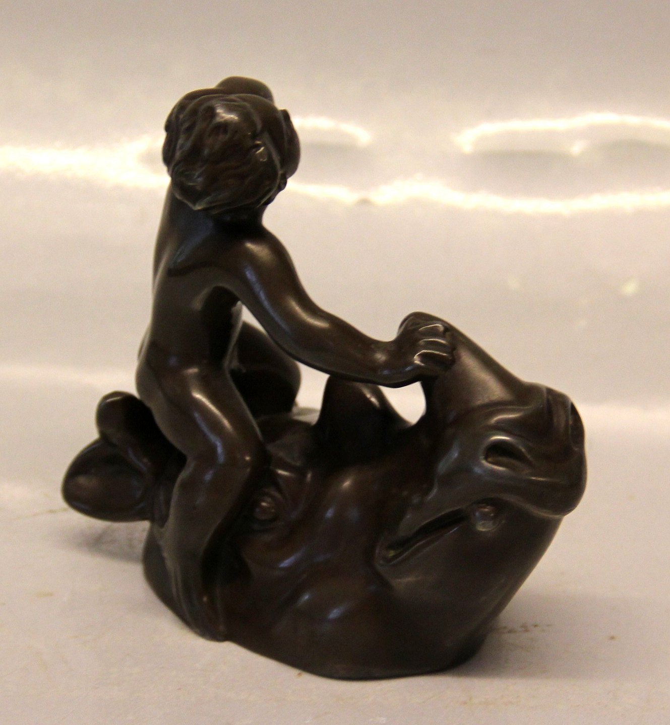 Beskrivelse: Art Deco Just Andersen Havdreng på Næsehorns hoved 12 cm Stemplet Just A. D. 1682 Denmark Diskometal Patineret bronze! I fin stand ca 1930