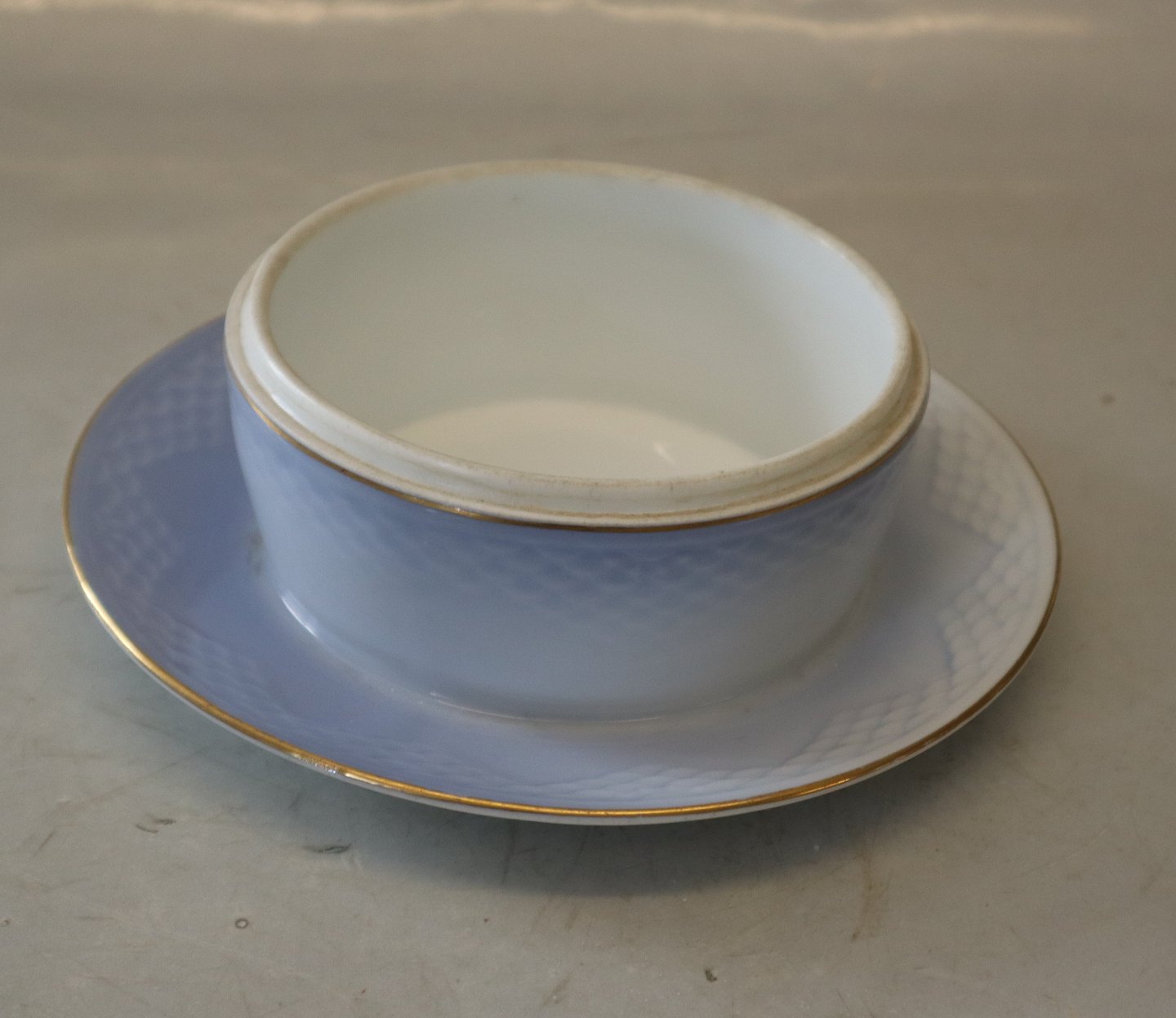 1 x Måge med guldkant 196 Underdel til sukkerskål m fast fod á kr. 300 (Måske blå tone ingen måger på skålen 1. sort