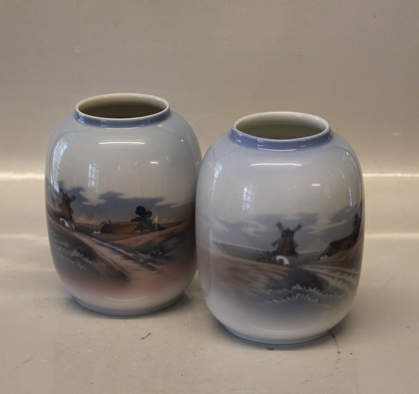 140-2-93 Lyngby Vase Landsby mølle 16.5 cm Stemplet med Kongelig Krone, Handpainted, Copenhagen, Made in Denmark. Også kendt som Københavns Porcelænsmaleri (KPM)