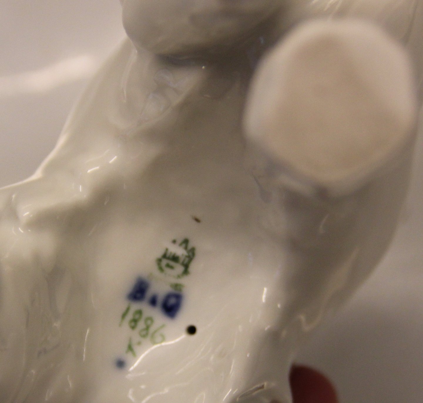 Bing & Grøndahl B&G 1886 Hvid kat med halen i vejret 16 x 23 cm