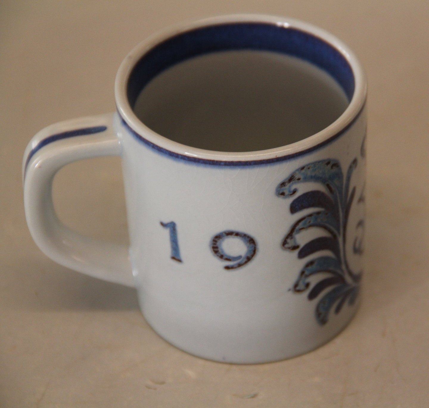 Beskrivelse: Royal Copenhagen Aluminia fajance 3495 Krus: Lille årskrus 7.5 cm Nils Thorsson 1966 (Margrethe og Henriks Bryllup 1967)