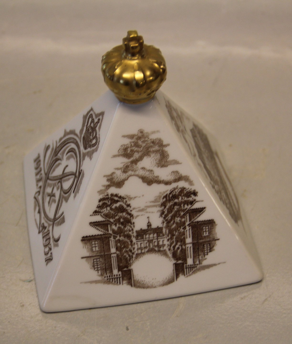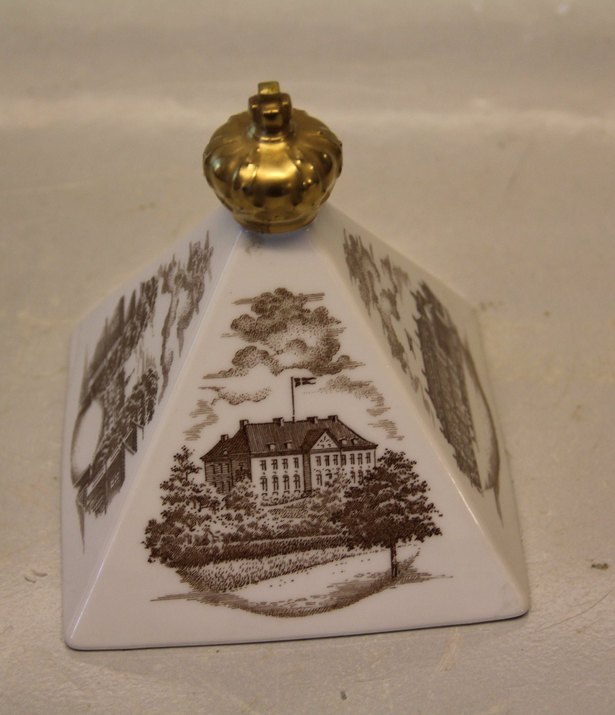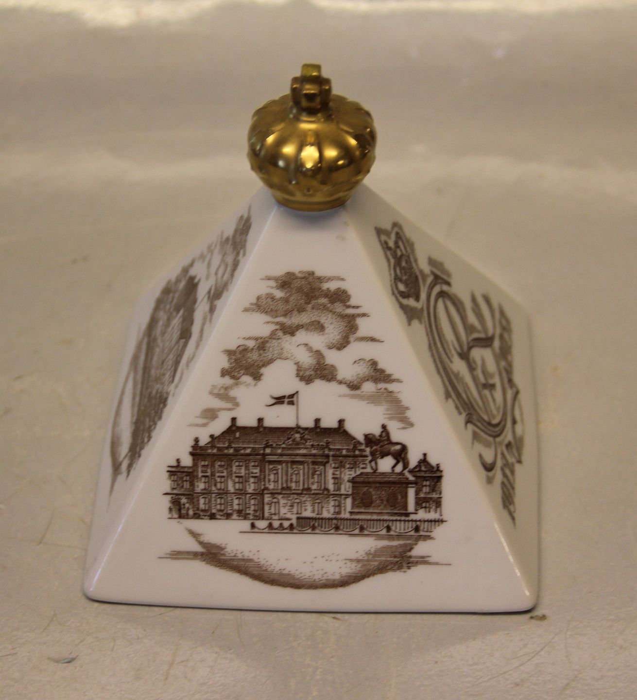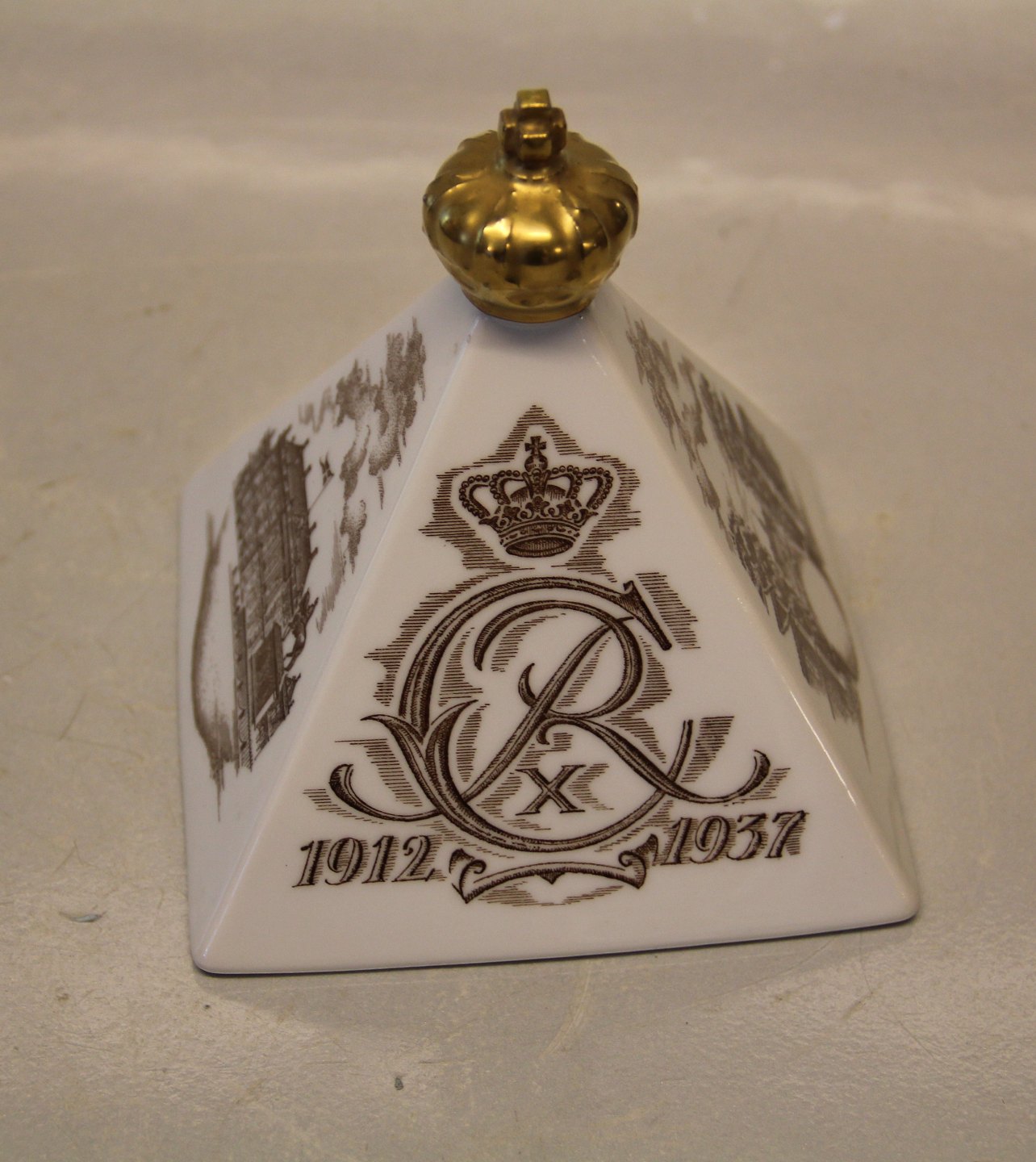 Bing & Grøndahl B&G 1912 - 1937 Pyramide med Amalienborg motiver 13 x 12 cm Christian X. 25 års jubilæum som konge