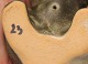 Beskrivelse: Siddende bjørneunge 023 grønglasseret 10 x 8 cm Johgus Bornholmsk Keramik