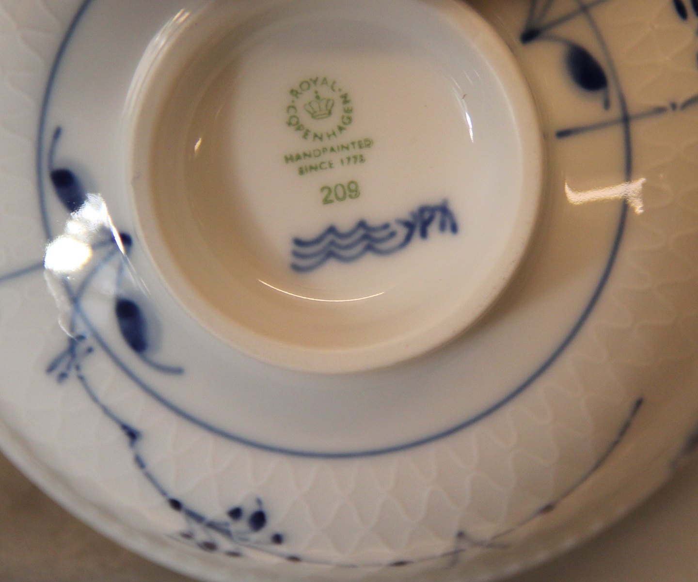 209-1 Skål 5.5 x 11.5 cm (1016950) Royal Copenhagen Musselmalet Blå Palmette . Muselmalet I fin og hel stand. Passer godt sammen med andre blåmalede spise- og kaffestel. Navnet Blå Palmette refererer til den 240 år gamle Musselmalede dekoration, hvor palmette er fagudtrykket for det stiliserede palmeblad, der er håndmalet på samtlige steldele