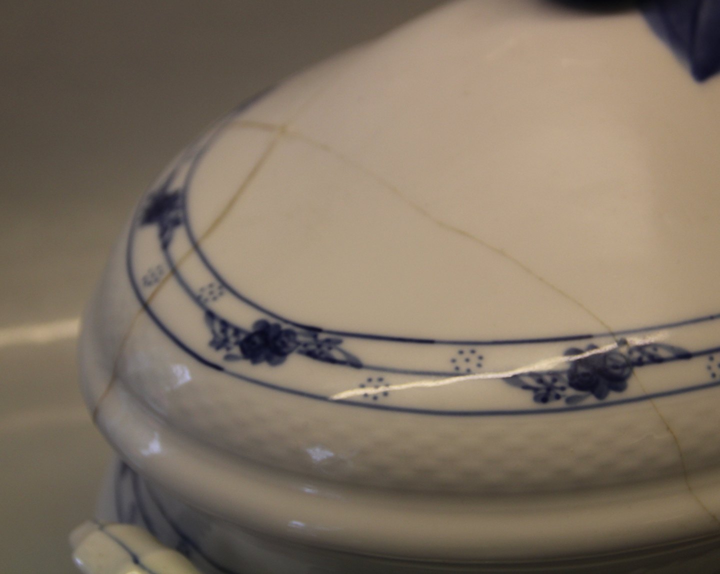 Beskrivelse: Rosenknop - Blå Rose Kgl. 408-8110 Stor terrin ca 30 x 40 cm Klinket Låg se billeder