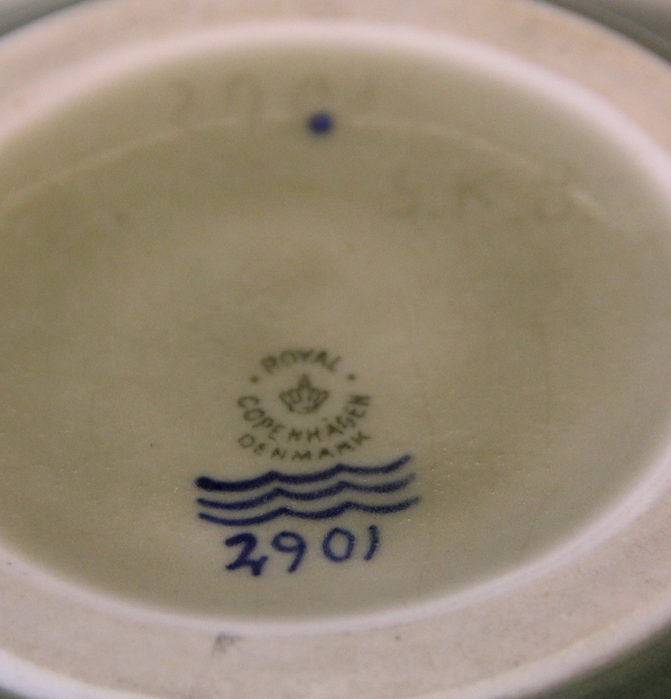 Beskrivelse: Royal Copenhagen stentøj 2901 RC Green Celadon Glazed Vase 15 x 22 cm Signeret S.K. 8 I fin og hel stand