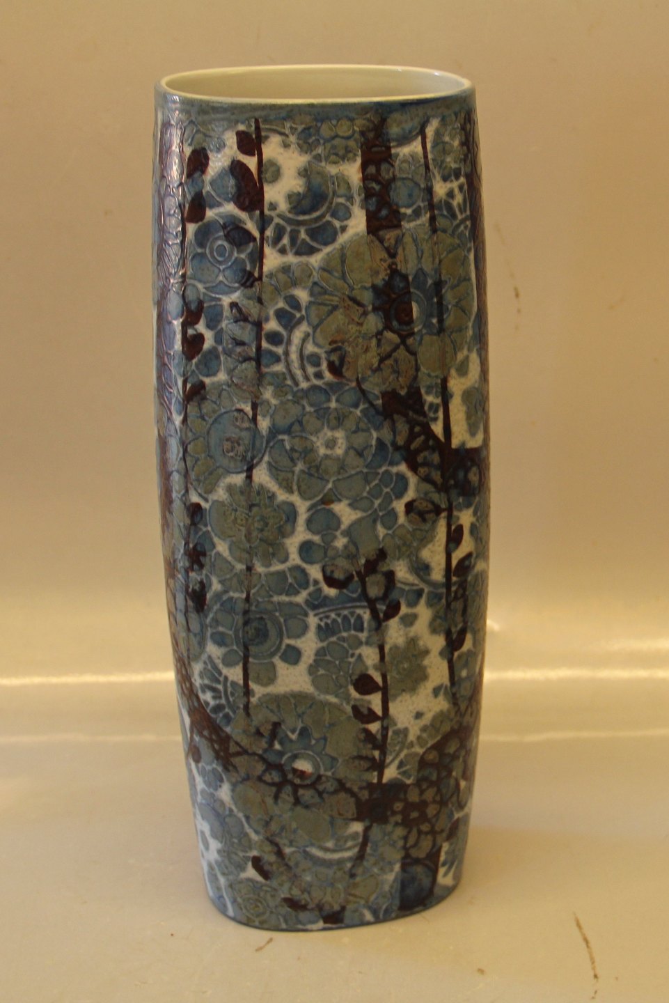 Beskrivelse: Royal Copenhagen Aluminia Baca fajance 780-3101 Vase 36.5 cm blå Baca, Johanne Gerber 1962 I fin og hel stand