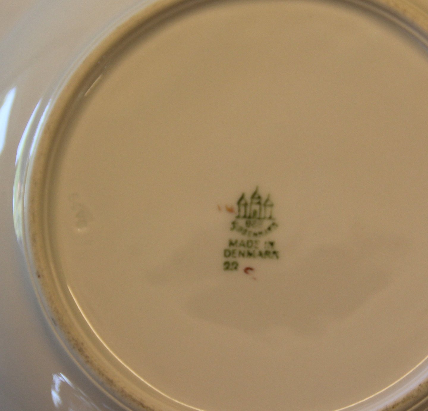 022 Stor dyb tallerken 24 cm (322) Bing & Grøndahl Victor Hugo vild rose på hvidt porcelæn med og guldkant, form 356 I fin og hel stand