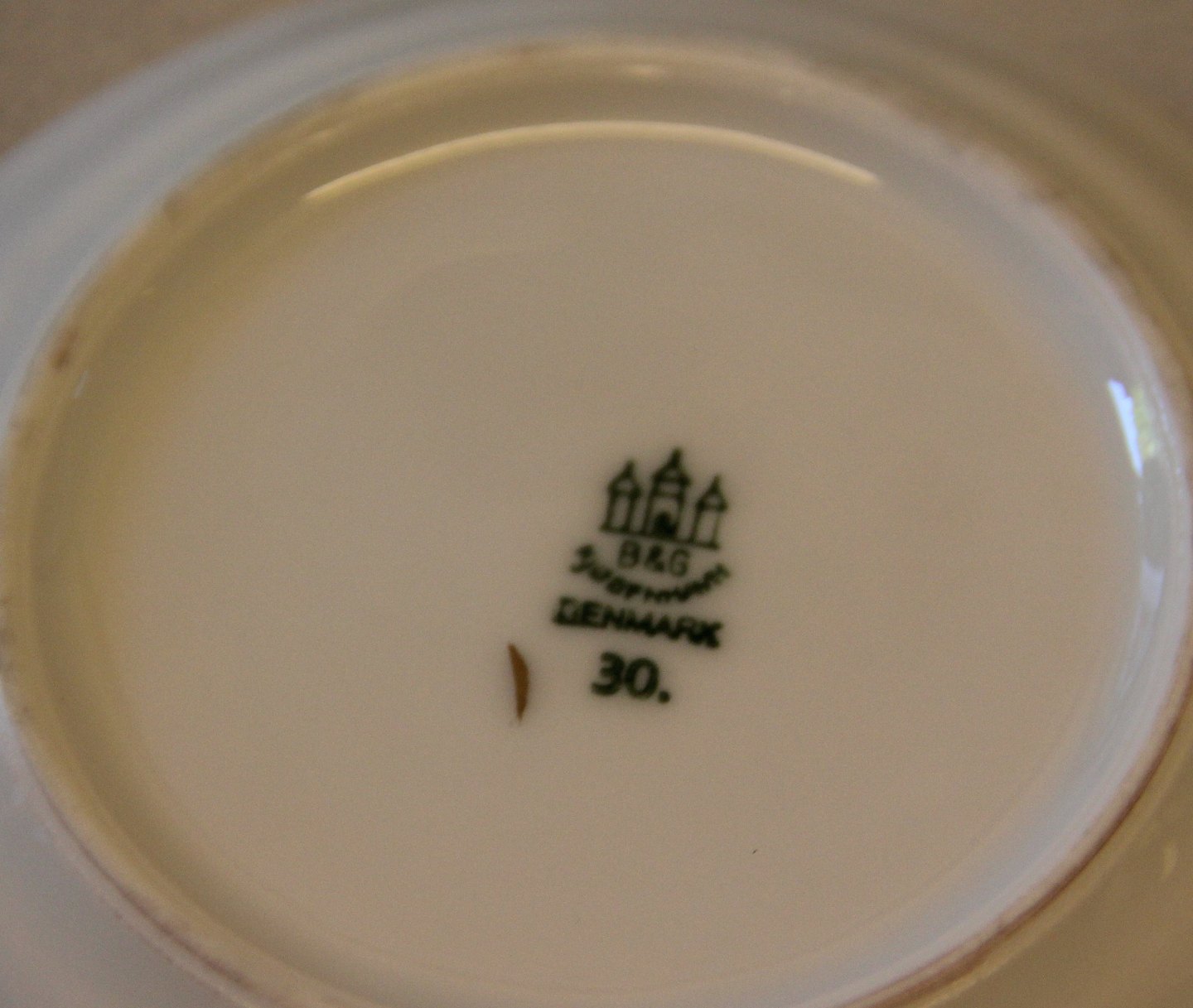 Glasbakke 030 Smørassiet 30 10 cm (332) Bing & Grøndahl Victor Hugo vild rose på hvidt porcelæn med og guldkant, form 356 I fin og hel stand