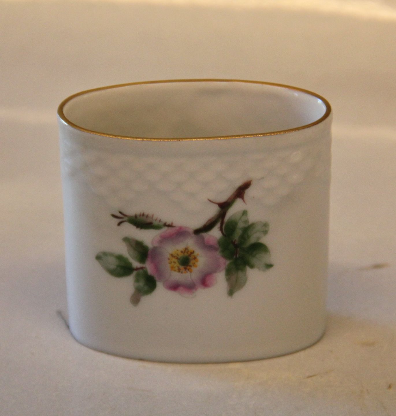 B&G Victor Hugo - vild rose på hvidt porcelæn med guldkant 183 Tandstikbæger ovalt 7 cm