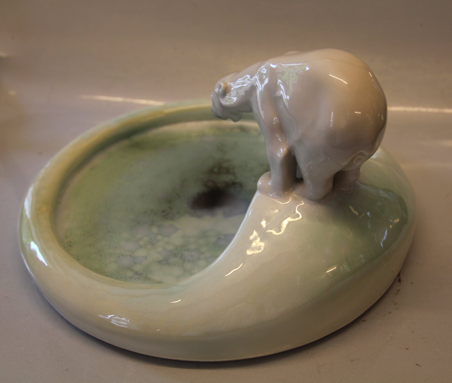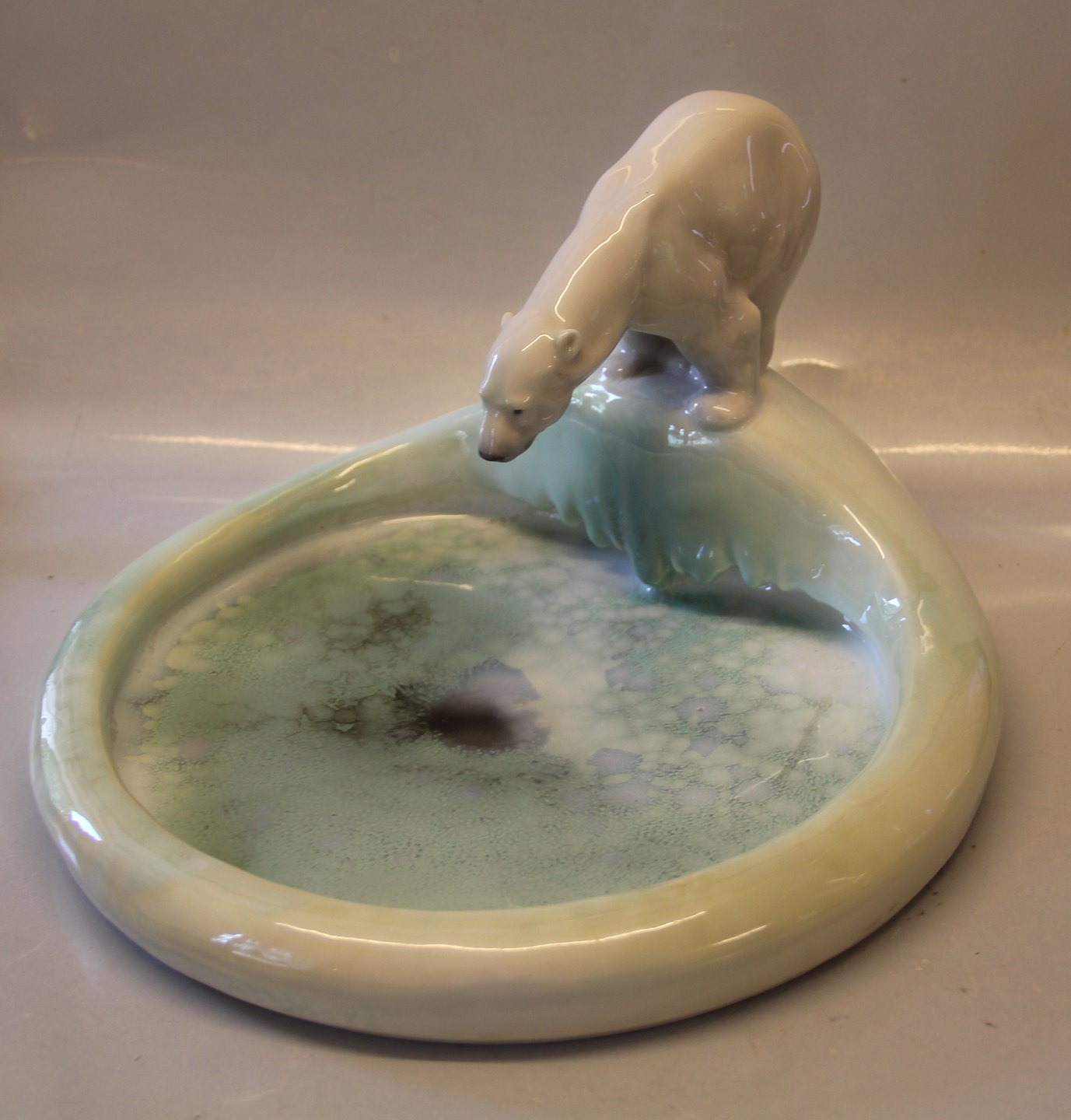 Kongelig Dansk Nordpolen fad med en isbjørn 32 x 20 cm Carl Johan Bonnesen 1921. Krystal isglasur Søren Berg 2-10-1926