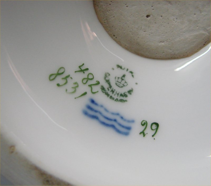 Strøblomster - på samme stelform som blå Blomst Kantet der blev re-designet af Arnold Krog i 1912-1913. Så den tidligst datering er omkring 1914. Af en eller andet grund er mange dele i denne serie mærket kun med de tre bølgelinjer - men det betyder ikke at de er fra før 1894
