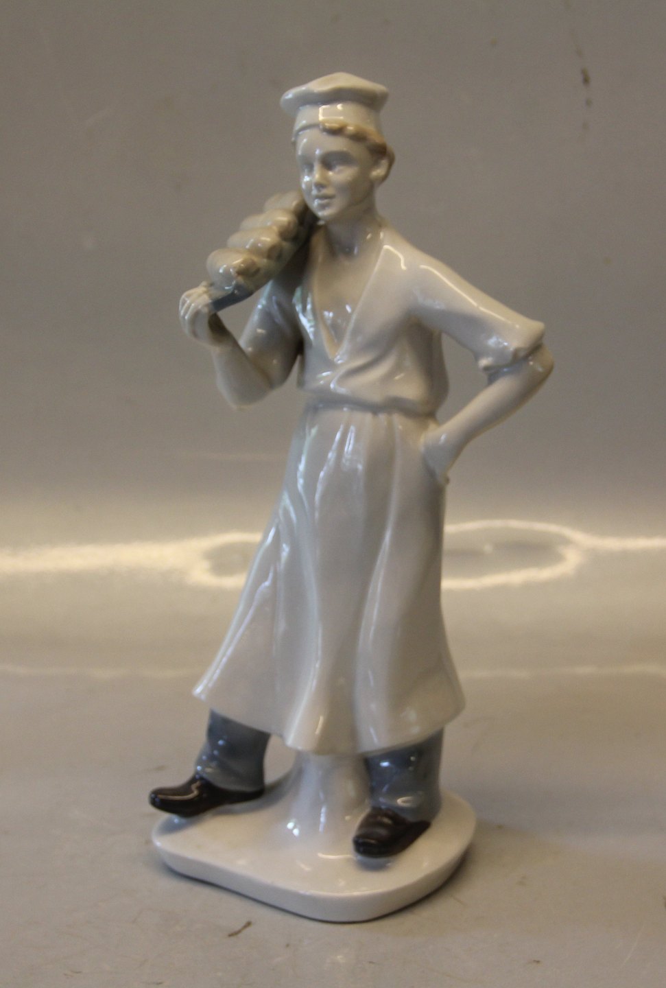 : Bagerfigur Tysk Porcelæn 27 cm Bageren med brød på plade - konditor